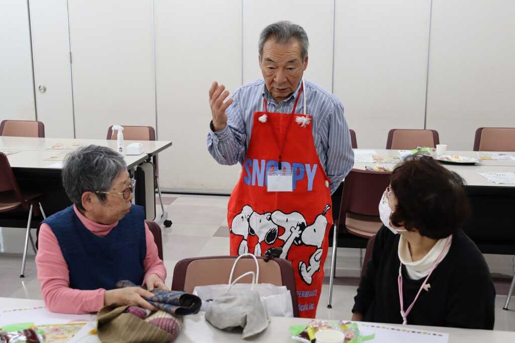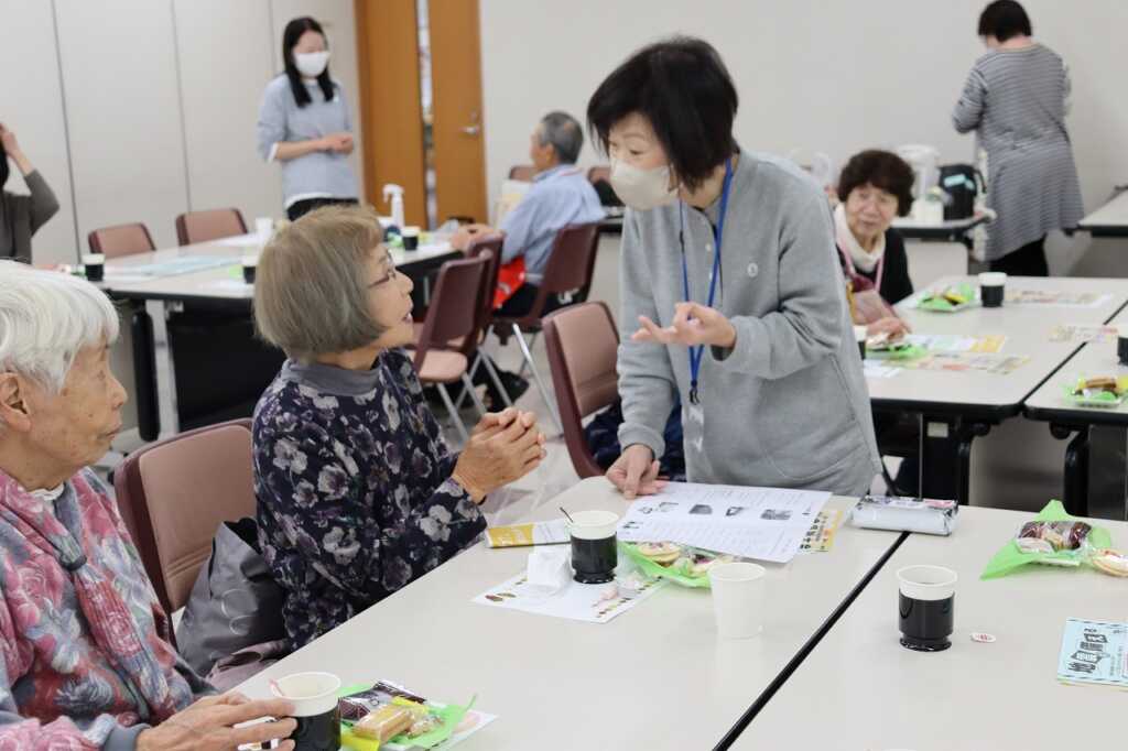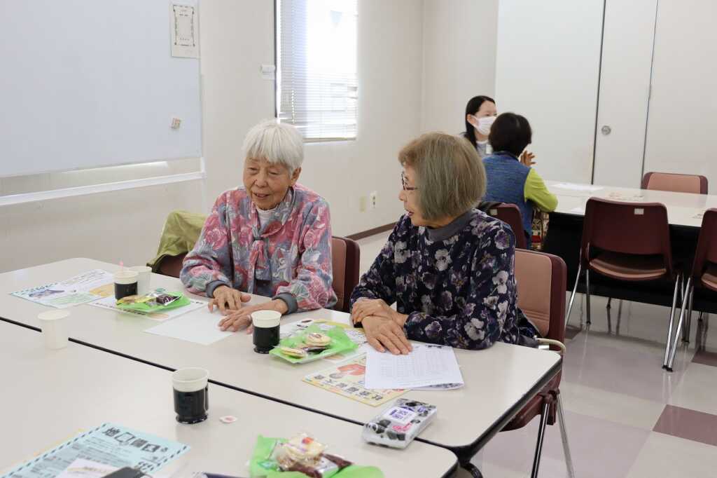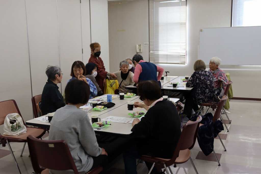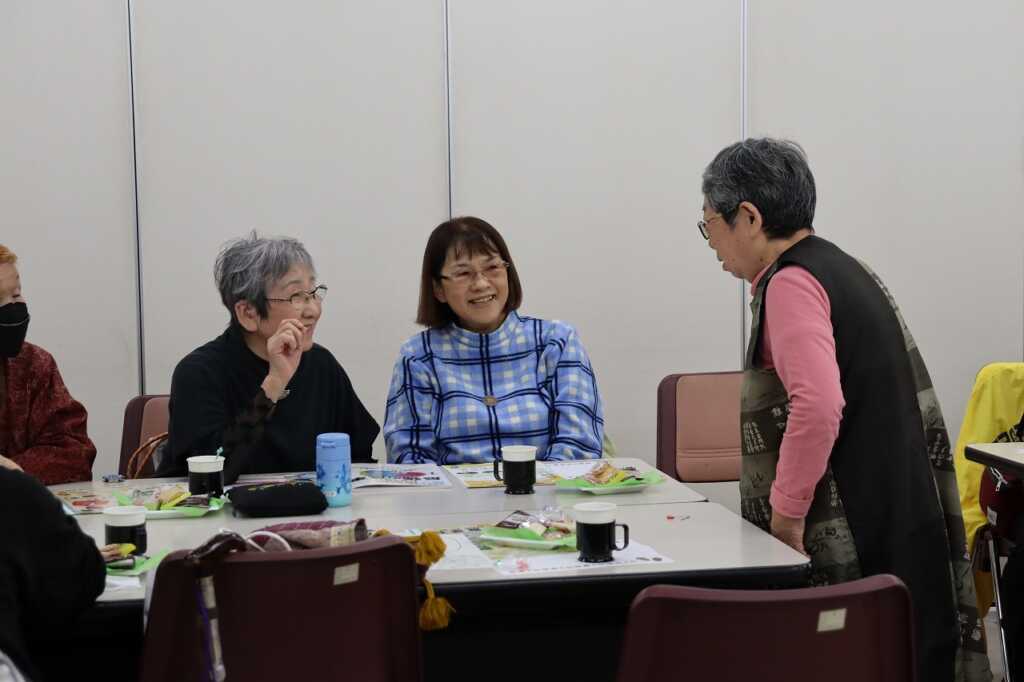 | 毎月1回女性センターにて開催している「ほっとカフェ」。参加者の皆さんは、お茶菓子をいただきながら、着物をリメイクしてカバンに作り替える方法や日々の体調管理の話題等で盛り上がっていました。 次回は12月15日(月)10時より開催予定です。クリスマスも近いので、お楽しみのレクリエーションも予定しています。参加費は300円で、どなたでもご参加いただけますので、皆さまお誘いあわせの上、ぜひご参加ください。 |