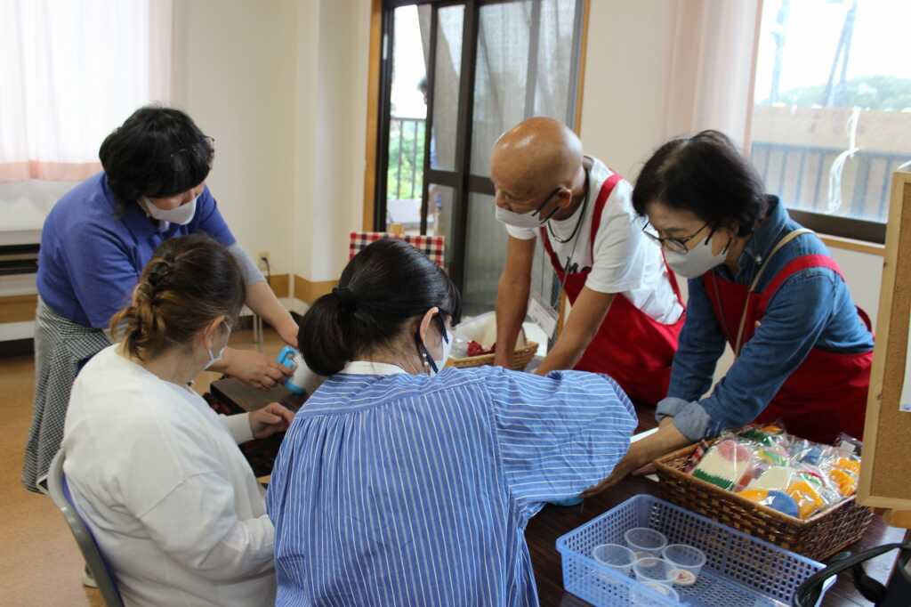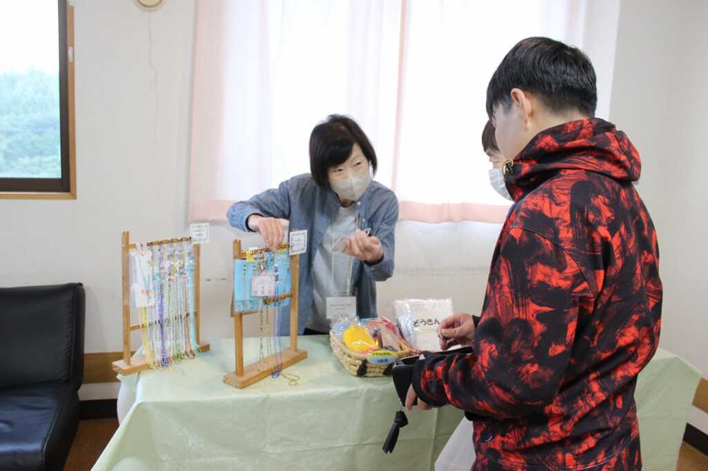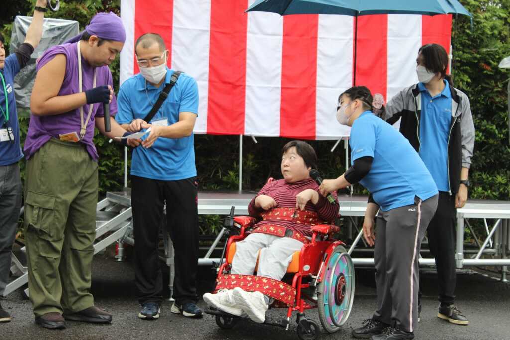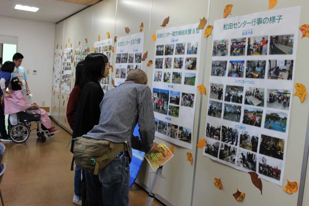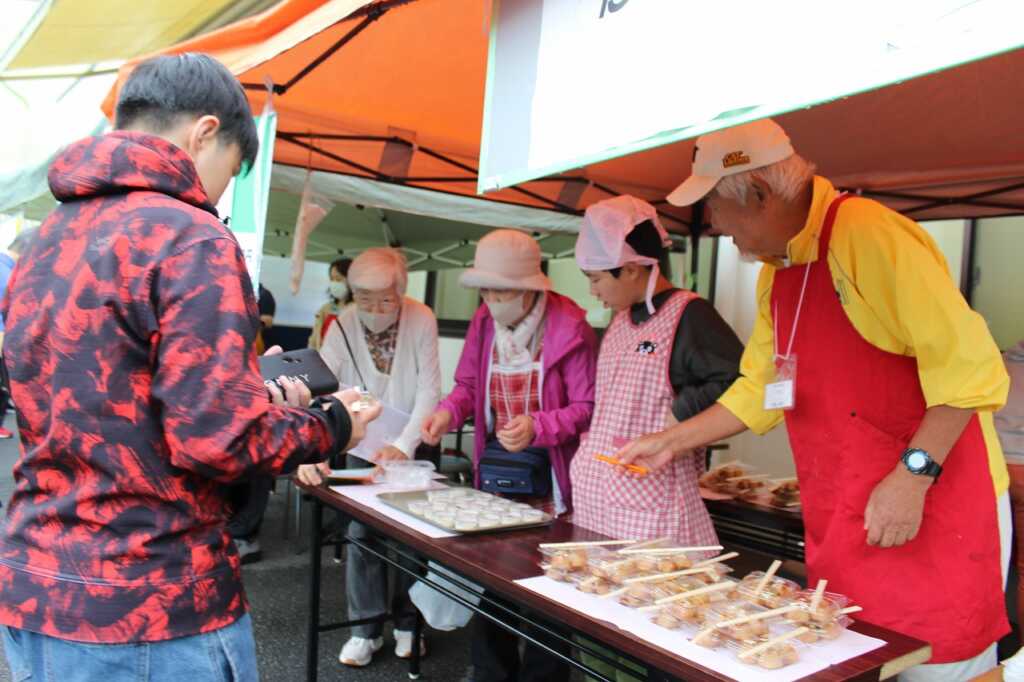 ご利用者さまによる「学園祭、始まりまーす!」という元気な開幕宣言により、年に1度の学園祭がスタートしました。屋外では民生委員や中沼福祉会、社協個人登録ボランティアなど、多くのボランティアの皆さんが出店の販売のお手伝いとして活躍。早速、チケットを持ったご利用者さまが次々に列を作り、ボランティアの皆さんも大忙しで対応にあたりました。館内ではご利用者様の作品や普段の活動の写真などの展示物も並び、学園生活も垣間見える機会となっていました。 |