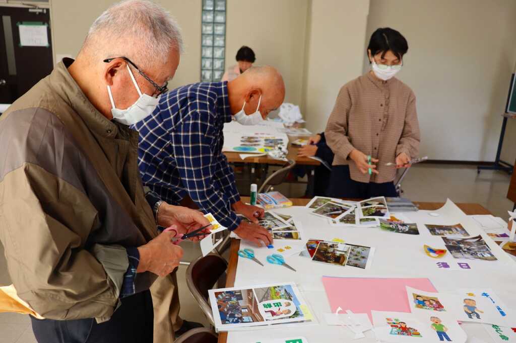 レクリエーション後は、社会福祉大会で展示するパネルを作成しました。今まで行ってきた活動を振り返りながら、特に力を入れてきた写真を選びコメントを記入しました。岡本地区の地域福祉会長達の力作のパネルを、ぜひ社会福祉大会でご覧ください!