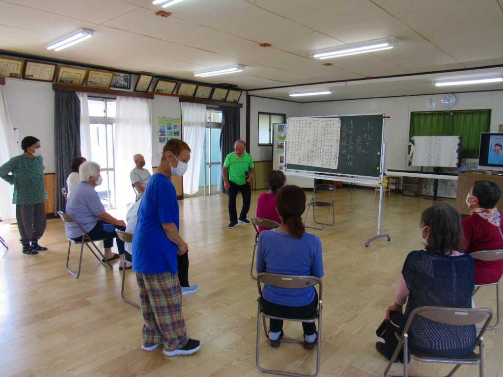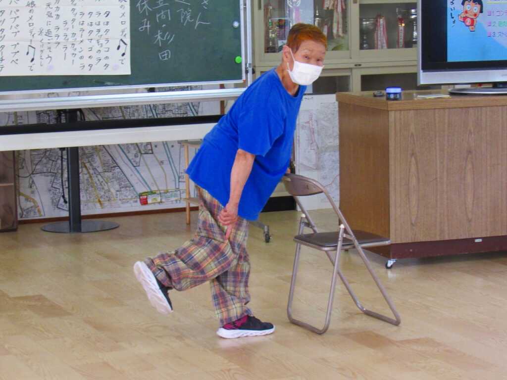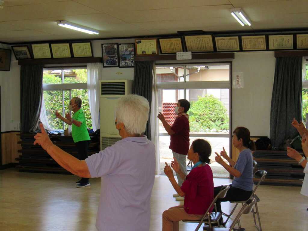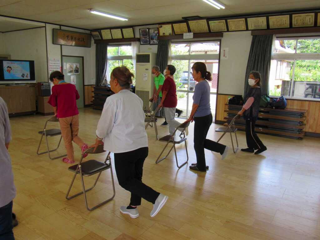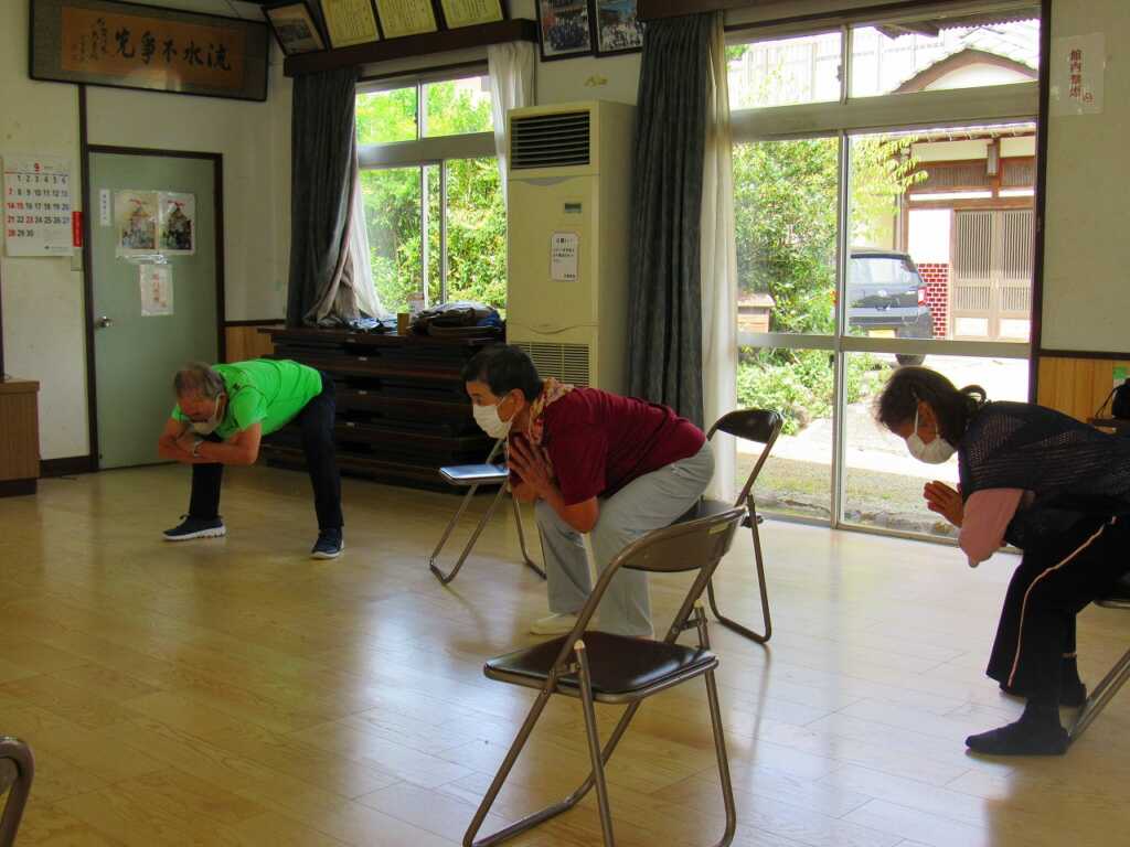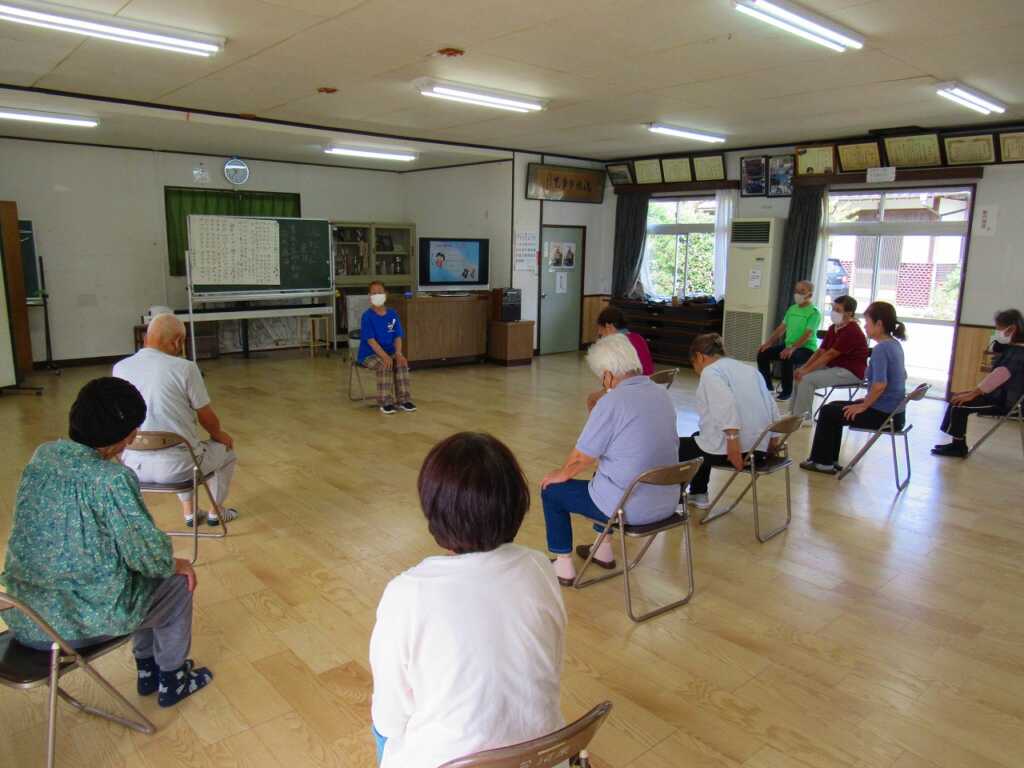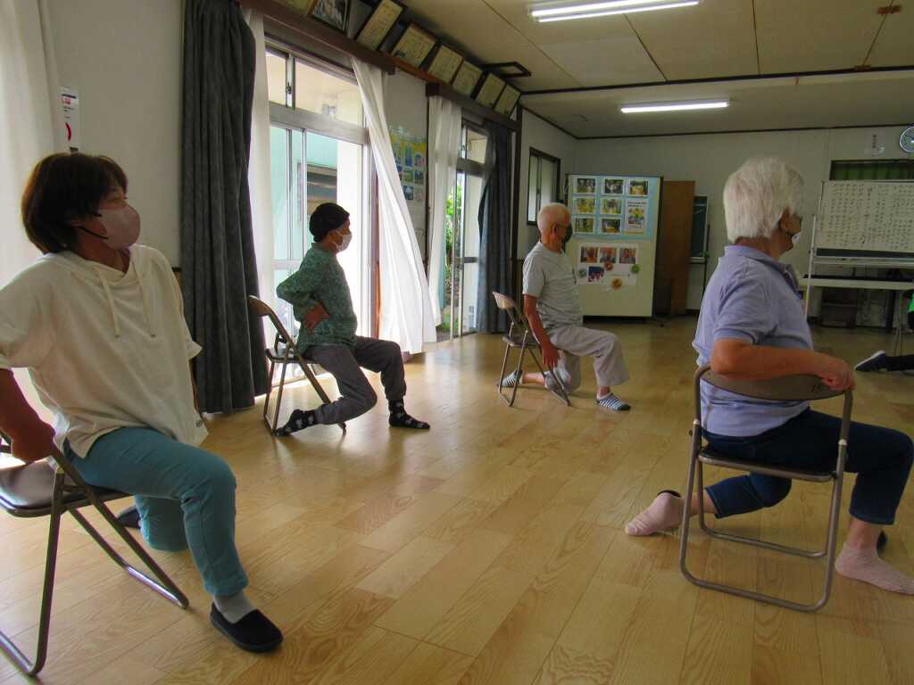 連日の猛暑が少し和らぎ心地よい風が吹く中、11名が参加されました。金太郎体操で身体を動かした後は、座位で行えるストレッチと筋力トレーニングが行われました。「久しぶりなのでスクワットを多めに行います」と介護予防サポーターの声かけの元、適度に負荷をかけながらトレーニングが行われました。「久しぶりに身体を動かすと良いわね」と参加者の皆さんトレーニングに励んでいました。 次回は10月13日(月)スポーツの日で祝日ですが開催します。 |