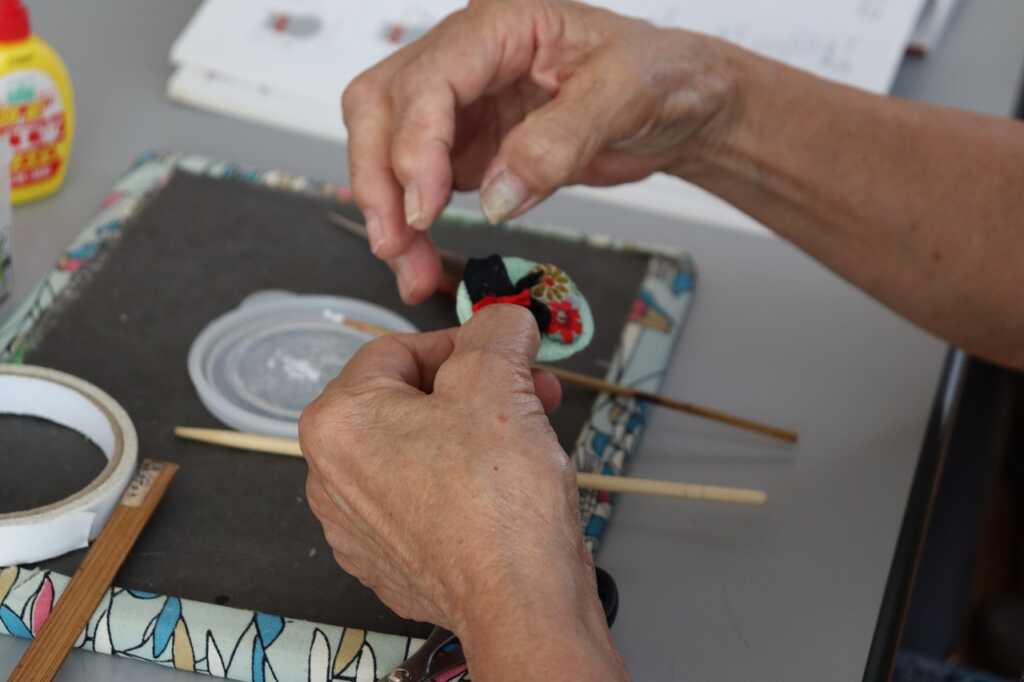 今回は犬と猫のブローチづくりをしました。針と糸は使用せず、ボンドを使用して型紙に丁寧に布を張り付けて作りました。バランスよくパーツを張り付ける作業に苦戦されている姿も見られましたが、完成した時の喜びはひとしおです。11月の文化祭に向けて、ますます作品づくりに熱が入りますね。 次回は10月8日(水)の開催です。 |