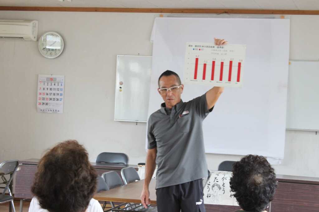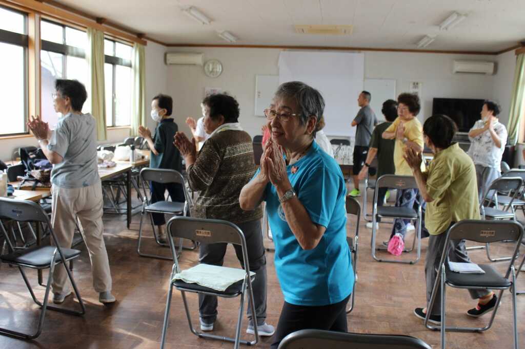 初めに、関本で初実施となった健康度測定の結果について、健康運動指導士の吉井昭洋先生から総評が行われました。吉井先生は、参加者の平均年齢が82.1歳であるが、基準値より点数が高く良い成績だったことに触れ「日常生活をしっかり送り、体力維持を継続してほしい」と励ましの声かけを送っていました。 その後は、吉井先生による運動指導が行われ、しこ踏み・バーベルを持ち上げるような手足の曲げ伸ばし・ゆらゆら体操・ねじる体操など一つ一つを丁寧に実践していきました。指導が終わった後は、参加者からの質問が相次ぎ「テレビ体操を普段からやっているけれど、今のまま継続していいか」という問いについては「ただ真似するだけでなくどこの部位を動かしているか、意識しながら取り組むとよい」と具体的なアドバイスが送られていました。 げんき体操は、毎月第1・第3木曜日13時30分から開催しています。 |