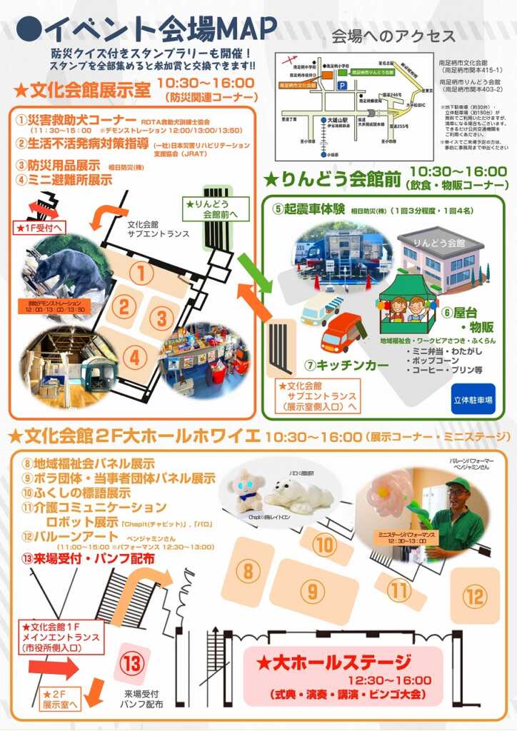 11月29日(土)の社会福祉大会での企画をご紹介します。今年のテーマである「防災」にちなんで、災害救助犬のコーナーを展示室に設置します。RDTA救助犬訓練士協会にお越しいただき、パフォーマンスを予定!令和6年能登半島地震の際にも捜索活動で活躍した災害救助犬に、ぜひ会いに来てください。 今後も社会福祉大会の情報を随時更新していきます。ぜひ、チェックしてみてください! |