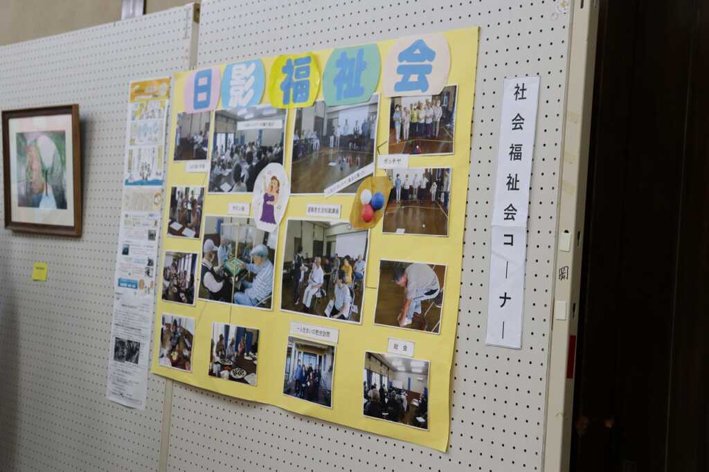 子どもから大人まで、大勢の地域の方が公民館に集まり、賑わっていました。公民館のホールでは、地域の方が製作した絵やコースター等の作品が展示されました。地域福祉会では、1年間の活動を写真や文章で紹介するパネルを作り、掲示しました!