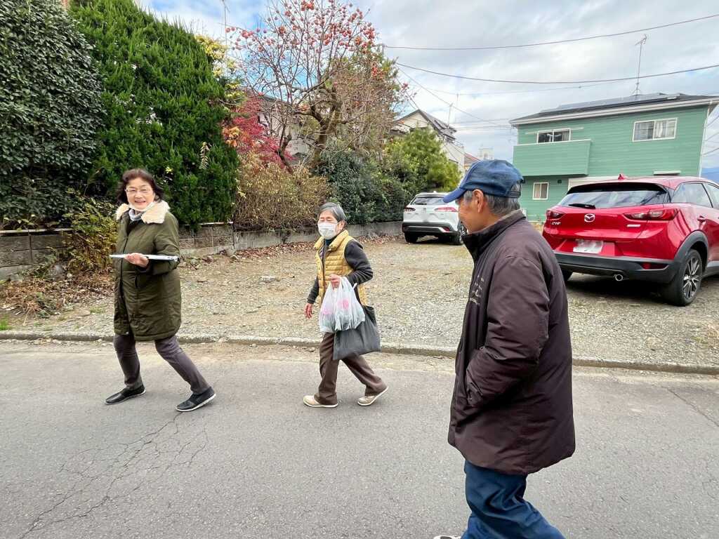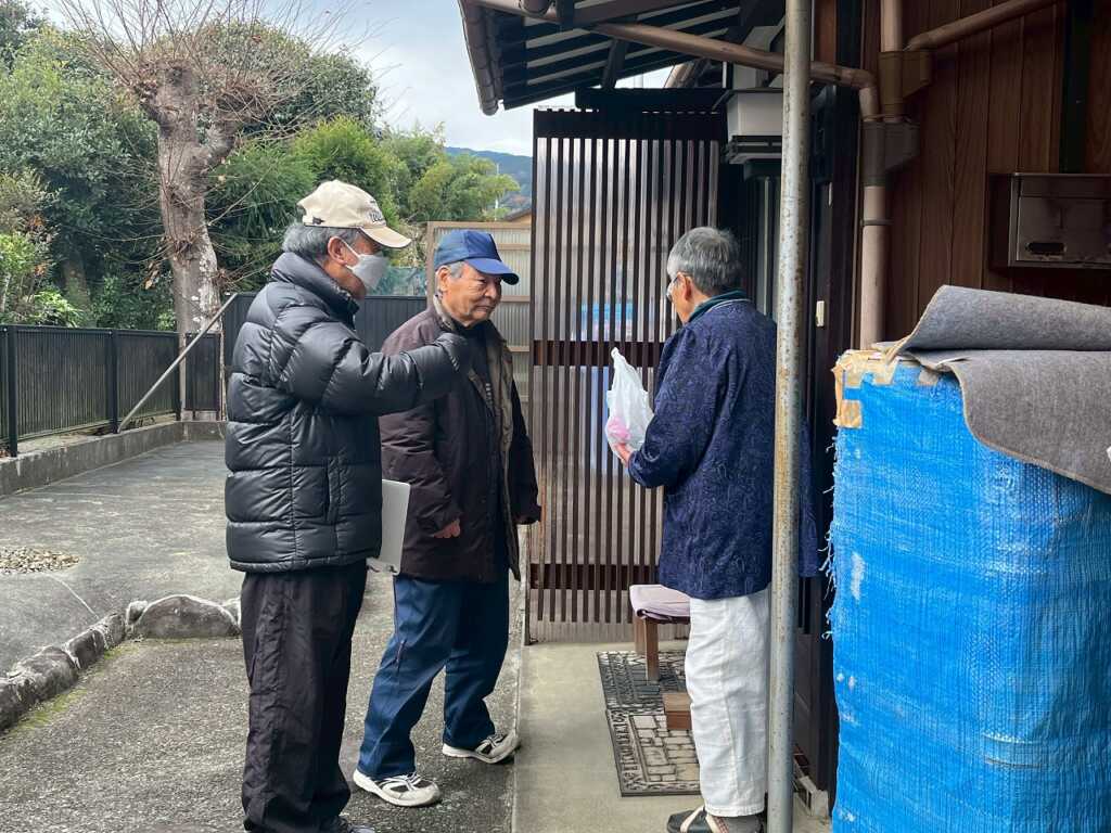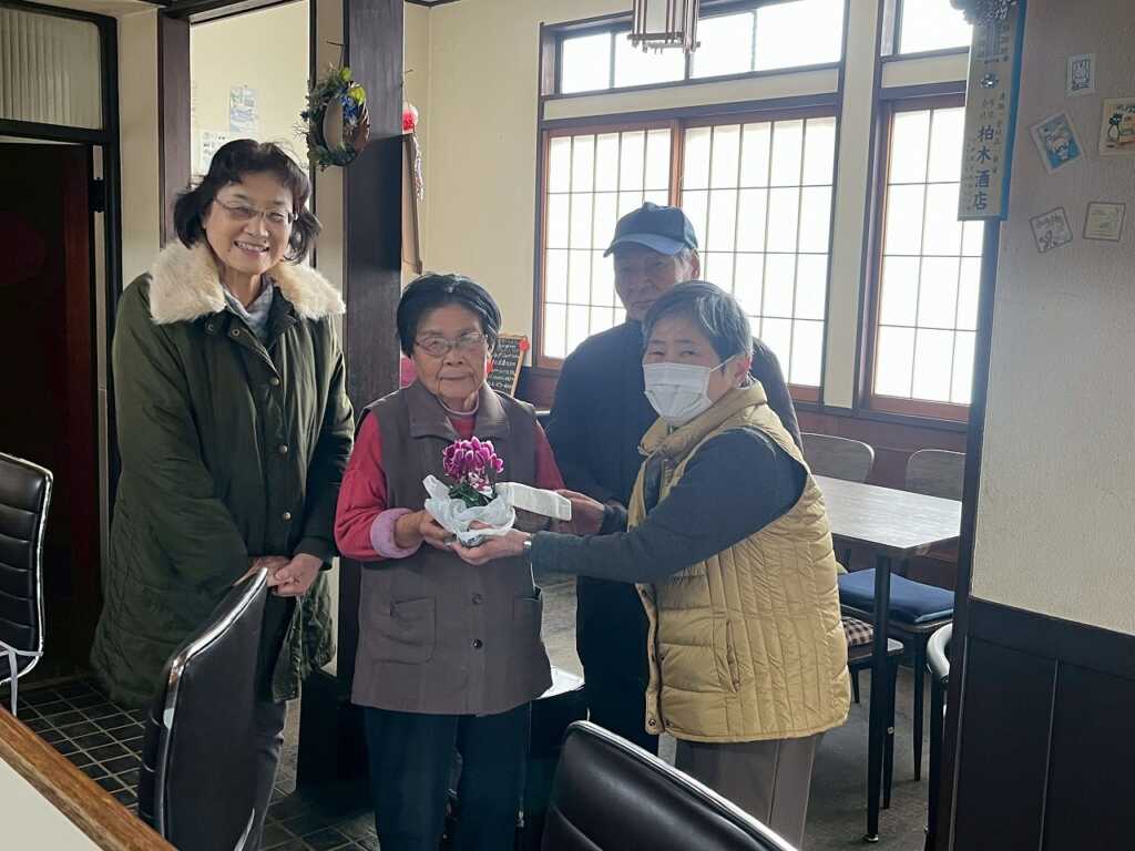 | 75歳以上の地域住民を対象に、地域福祉会よりお花とどら焼きを贈呈しました。民生委員の方にもご協力いただき、一軒一軒回りお届けしました。訪問の際には、普段の生活の中でのどのような困り事があるか、地域の皆さんからお話を伺った為、次回の協議体(話し合いの場で)で、地域の支え合い活動として、どんなことなら自分達にできるか話し合うこととなりました。 |