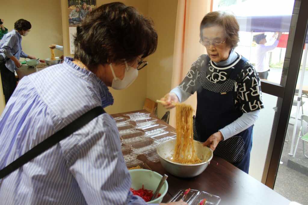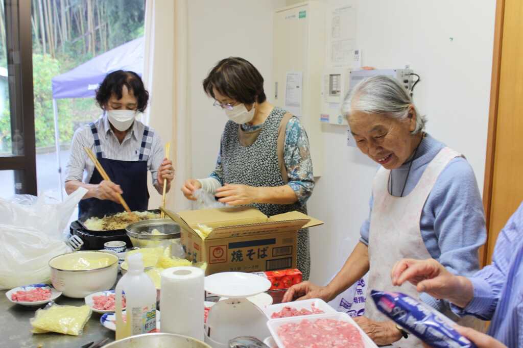 年に1度のビックイベントの開催です!広町福祉・げんき計画推進委員のみなさんは、前日と当日も朝8時から焼きそば300食分の下ごしらえを準備され、スタートに間に合うよう、急ピッチで作業していました。公民館前には、地元企業や自治会の各団体による出店が立ち並び「雨の中よく来たね」と声をかけあう姿もありました。公民館の中ではカラオケ大会等の催しが次々と行われ、賑やかなひと時を過ごしました。 |