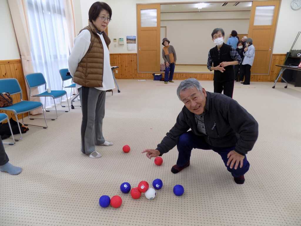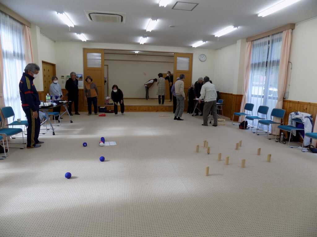 今回は秋のスポーツ大会と称し、パン食い競争・輪投げ・ボッチャ・モルックをチーム対抗戦で行いました。今回は優勝チームに景品が手渡されるとのことで、春のスポーツ大会の時以上に気合十分で挑みました。ボッチャはもともとあったボールの上に投げたボールが乗るミラクルショットもあり、笑いの絶えない時間となりました。
