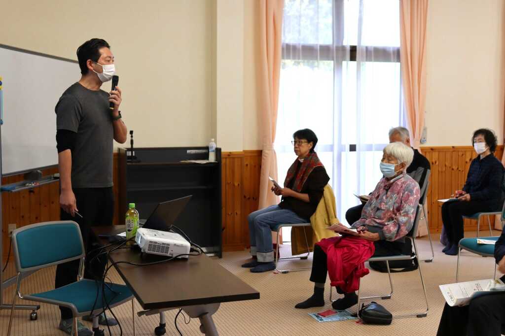 NEXT10(介護のチカラで南足柄を一番にする会)の金盛智也氏を講師にお迎えし、近年よく聞く「フレイル」について詳しく教えていただきました。フレイルには身体的、社会的、心理的・認知的の3つの要因があることや、他にも、予防する為に日々の生活で意識するポイントや簡単にできるセルフチェック等をご紹介いただきました。