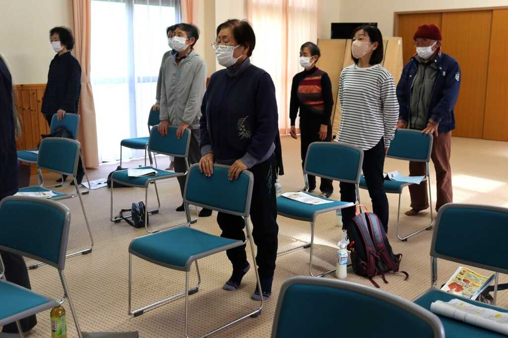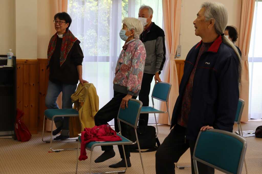 講義の合間には、皆さんで1分間の片足立ちにも挑戦しました。90歳の参加者は「まさか自分が1分もできると思わなかった!来て良かったわ!」と大変喜んでおられました。その姿を見て、他の参加者も笑顔になっていらっしゃいました!