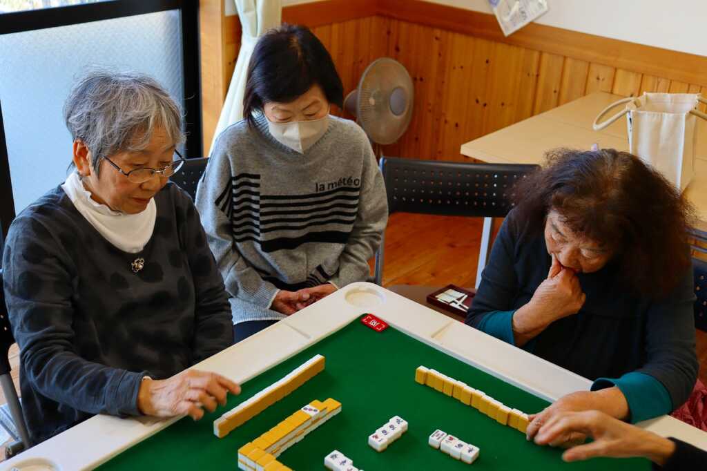 新しいメンバーが2名増え、1月の麻雀親睦会に向けて熱の入る麻雀サロン。初心者の方に麻雀のルールを教えながら、和気あいあいとした時間が過ぎていきました。「麻雀を知らない状態から始めた人も居るから、大丈夫よ」と以前から参加しているベテランメンバーの方と一緒に、麻雀を教わり初参加の方も1局打ちました。