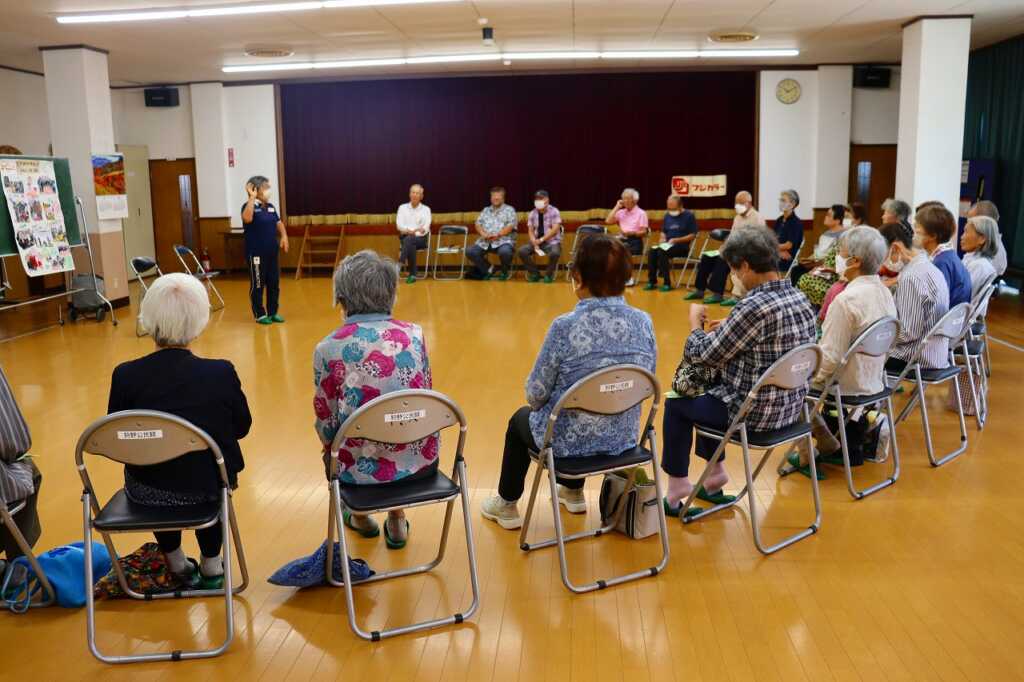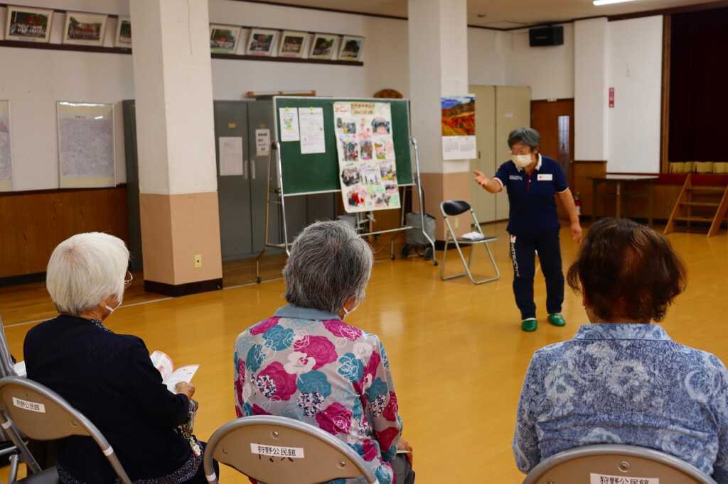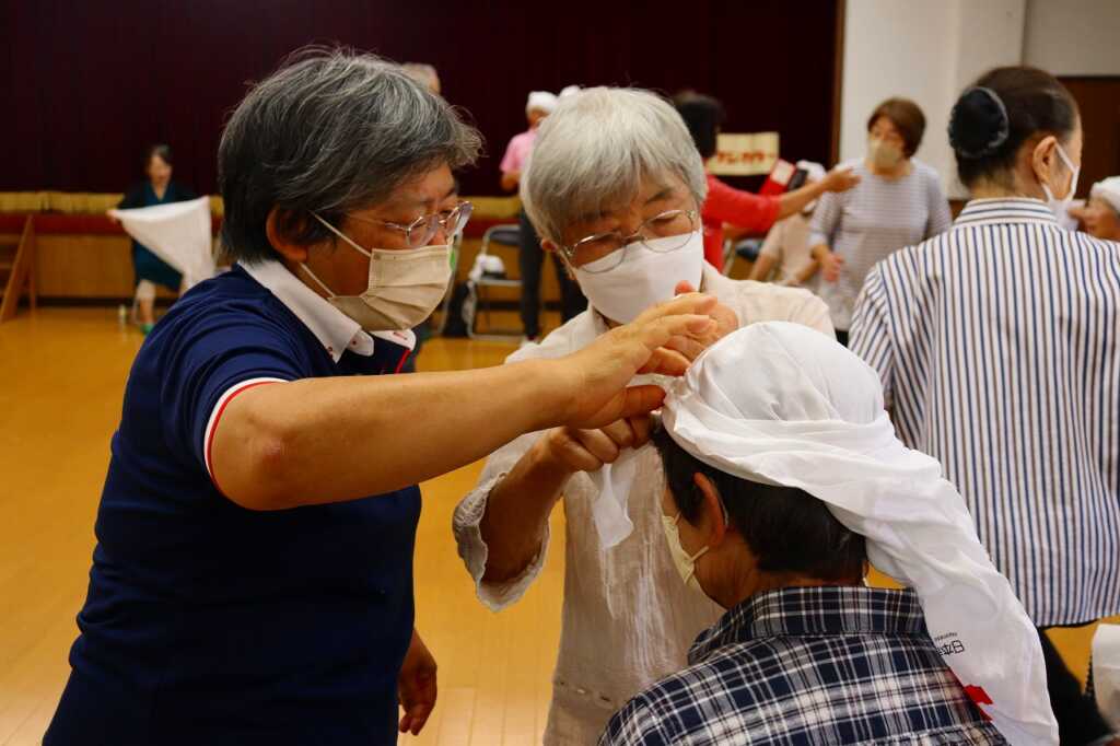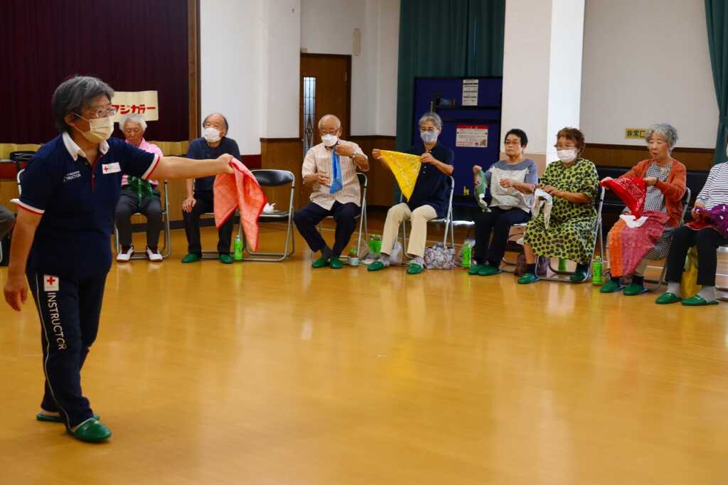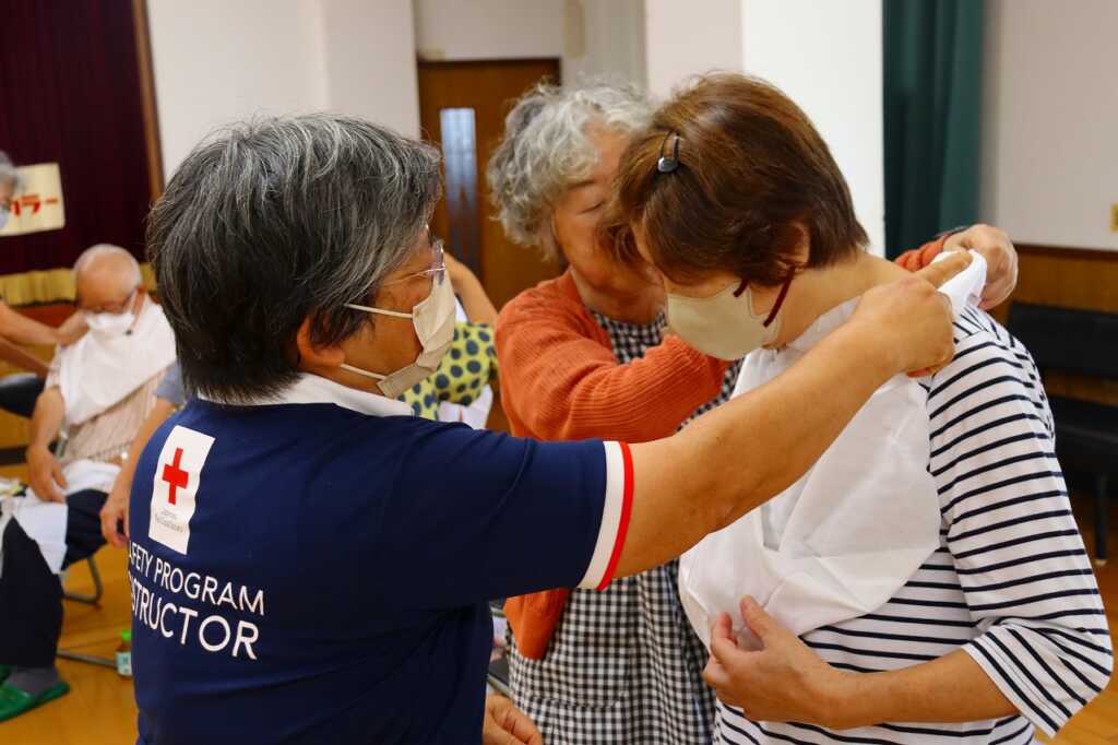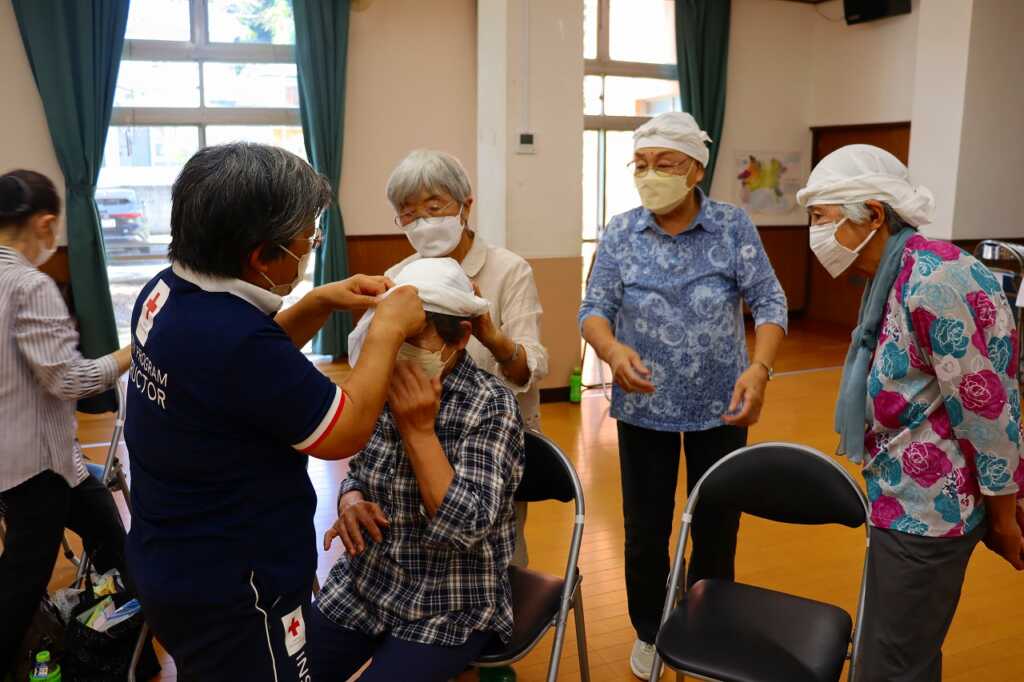 日本赤十字社 神奈川県支部 指導員の東江氏を講師にお招きし、怪我の手当について、実践を交えて講座を行いました。初めに、三角巾を使って止血や腕を吊る方法を学び、ペアになって手当をし合いました。次に、身近にあるものでの応急手当として、ストッキングやバンダナを使用して怪我の手当を練習しました。皆さん熱心に取り組み、最後には、講師から「初めての手当でしたがとても良くできていました」とお褒めの言葉がありました。