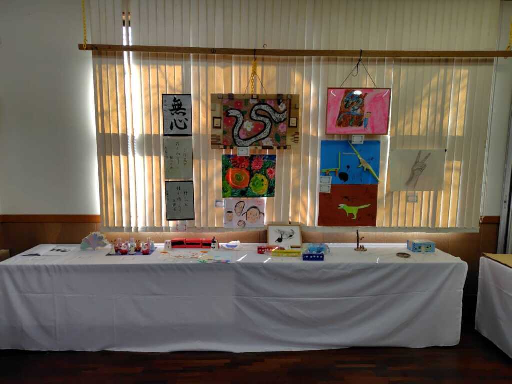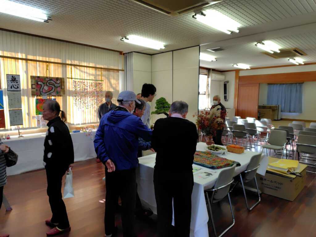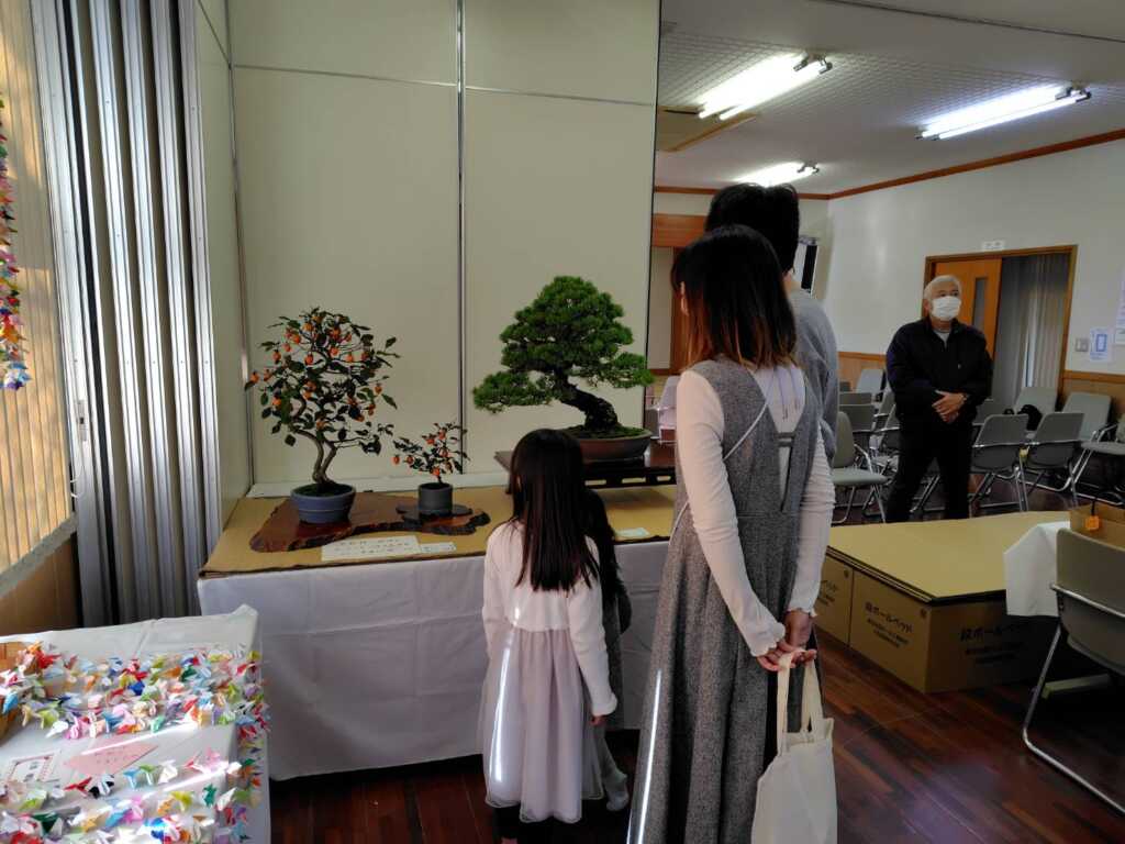自治会員の皆さんが心を込めて作成した盆栽や手芸品のほか、子どもたちの習字や絵の作品などが並びました。午後は子どものピアノ発表の場もあり、多くの来場者で賑わいを見せていました。