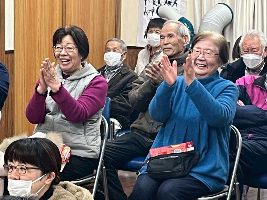 | 今回は、小田原マジシャンズクラブのお二人によるマジックショーでした。子どもからお年寄りまで、続々と公民館に集まり、会場内は満員御礼の大盛況でした。華麗なマジックの手さばきに何度も拍手や歓声がおこり、参加者はすっかり釘付けになっていました。 次回は、1月14日(水)9:30よりさわやかサロンを開催します。皆さんで麻雀、カラオケ、トランプを楽しみます。今年度最後のサロン活動となります。ぜひ、お越しください。 (お写真の一部は、福祉会員の小越さんよりいただきました。) |