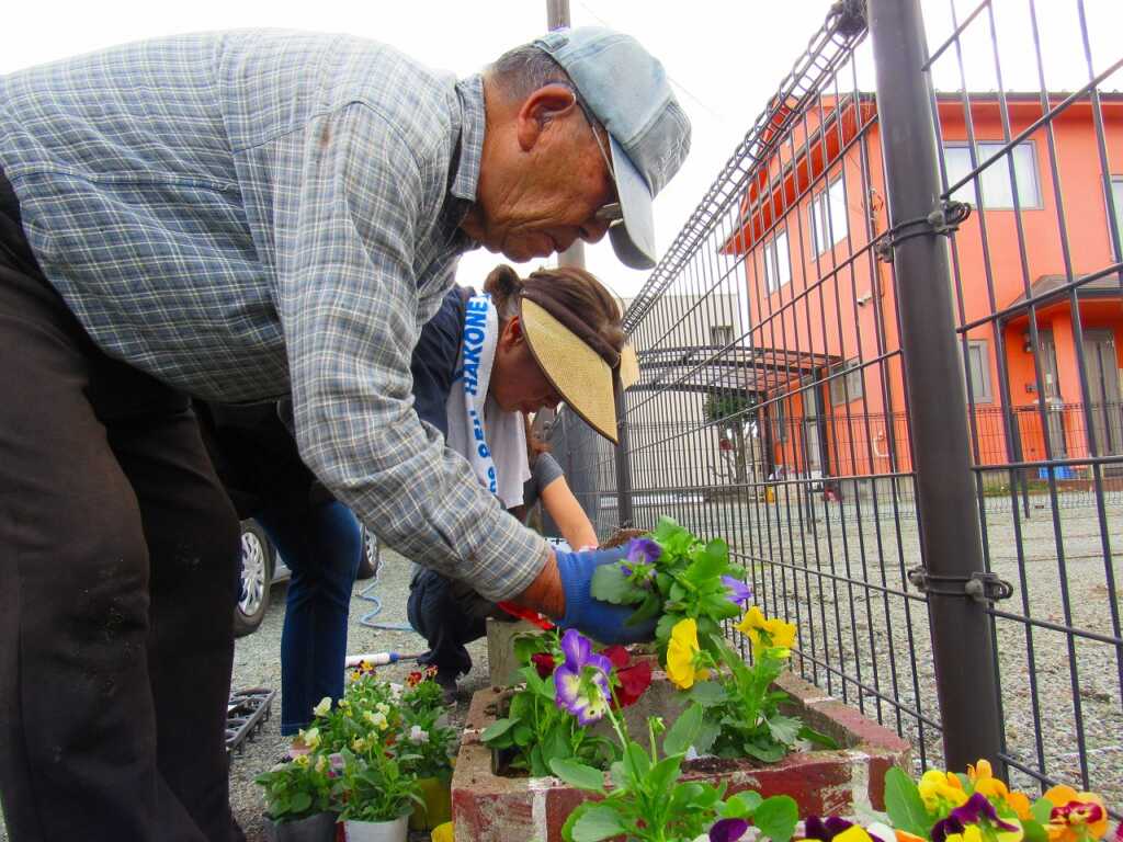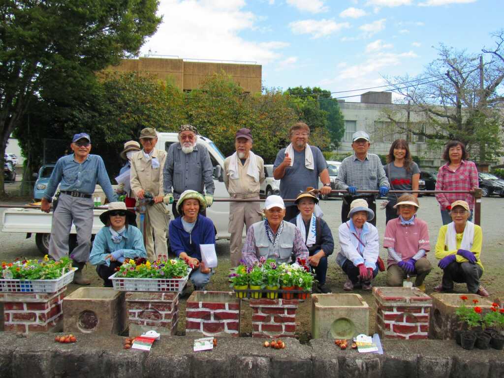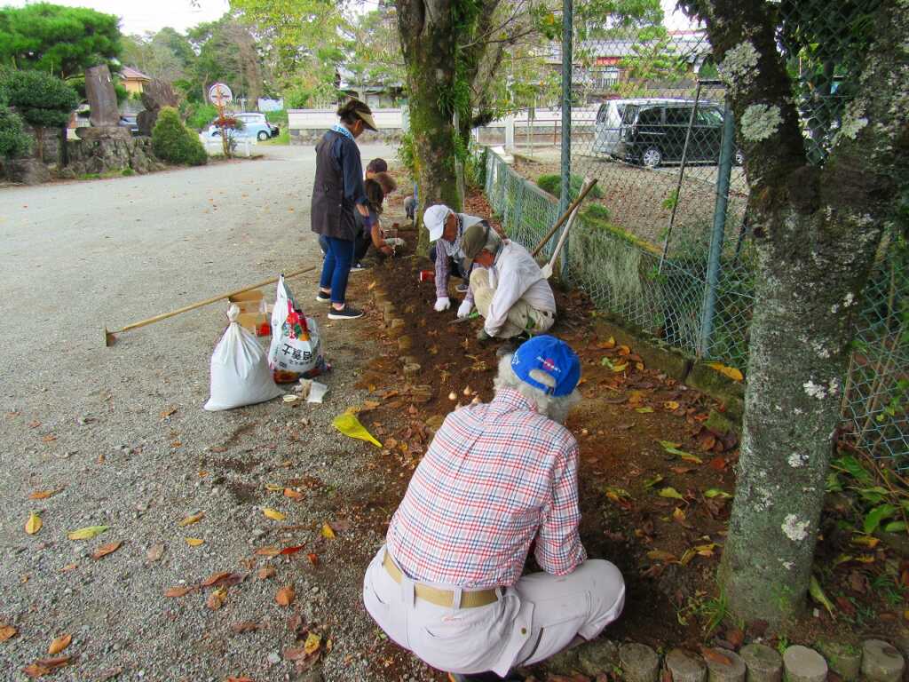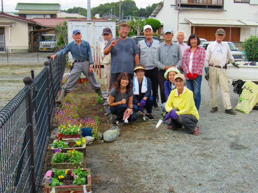 狩野地域福祉会が発起人となり、花壇づくりをしました。この活動のために集まった「花とも」が初めて集合し、福山福祉会長の挨拶と自己紹介からスタート。花ともや地域の協力者から花や球根、土などが多く寄付され鉢が足りなくなるほどでした。土作りから花植えまで行い、花壇が華やかになると会員の顔も綻んでいました。花は、公民館と筏場分館に植えられています。花ともが頑張って育てている花を、皆さん是非ご鑑賞ください。