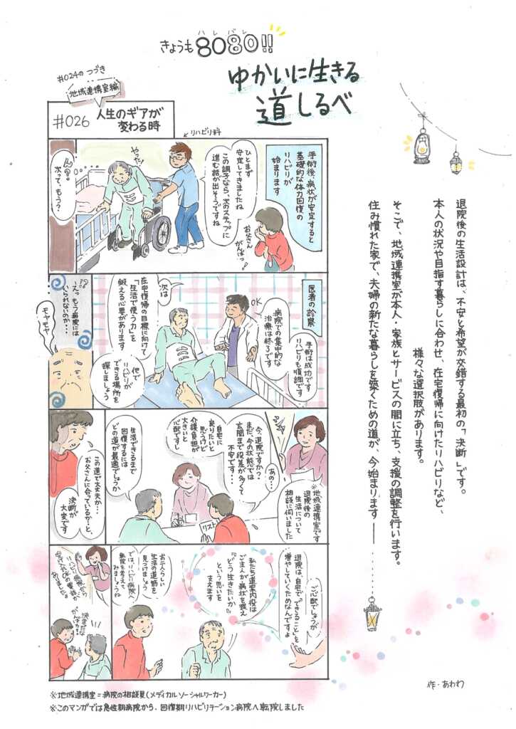 「地域支えあい協議体」ページ内に、四コマ漫画「きょうも8080!ゆかいに生きる道しるべ」最新号を掲載しました。ぜひ一度お読みください!
