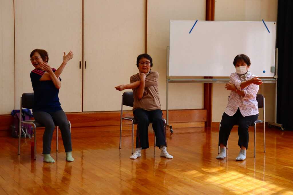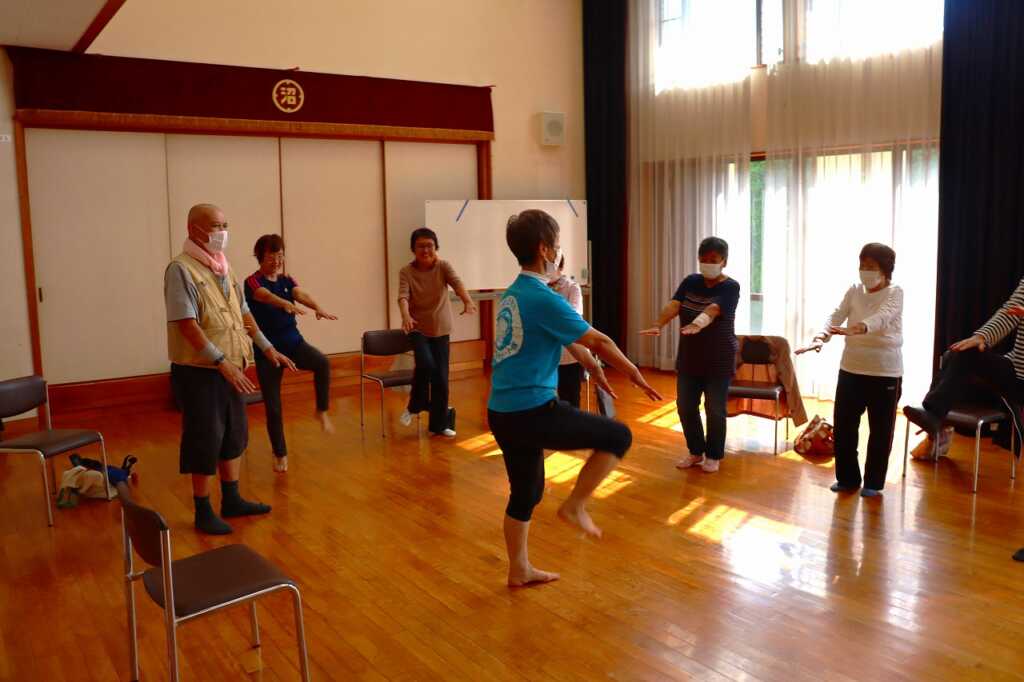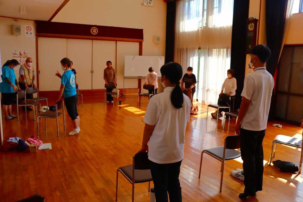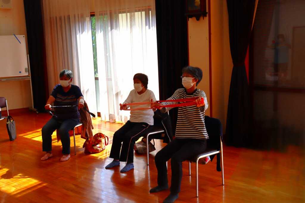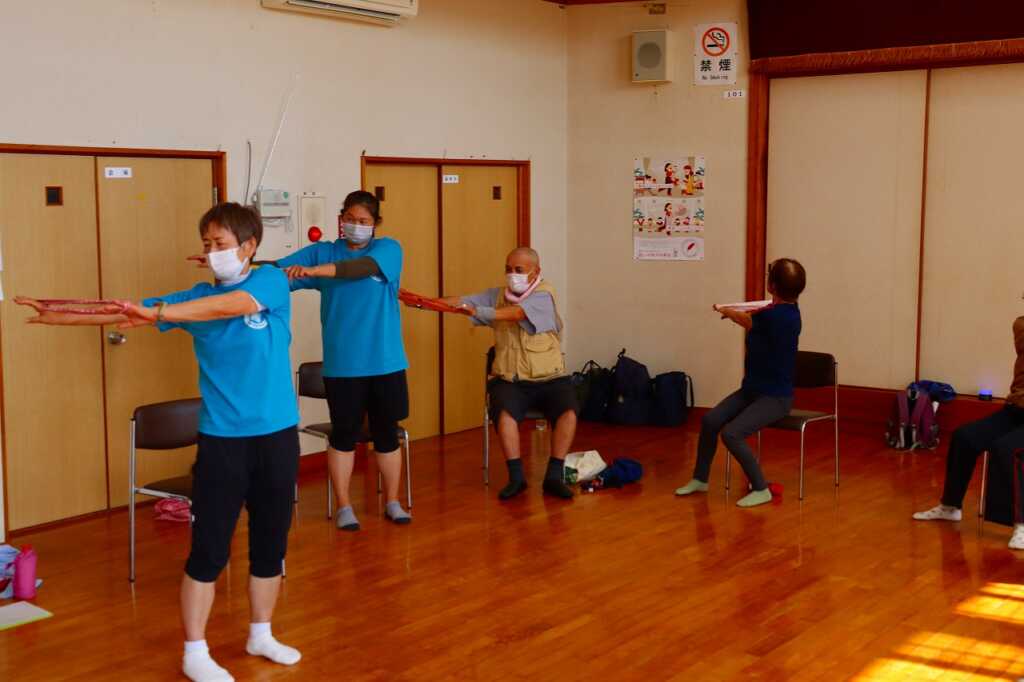 介護予防サポーターを中心に、お話も楽しみながら和気あいあいと体操を実施しました。30分かけてじっくりと全身のストレッチを行って身体をほぐした後、下半身の筋トレや紐を使った体操に取り組みました。参加者の皆さんはご自分のフォームを確認しながら、背筋が曲がらないように意識して取り組んでいました。介護予防サポーターの方から「テレビを観ながらでもできるので、隙間時間で体操やストレッチを行い筋力が衰えないようにしましょう」と声掛けがありました。 次回は11月14日(金)の開催です。是非ご参加ください! |