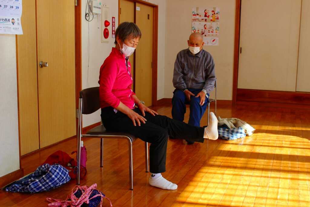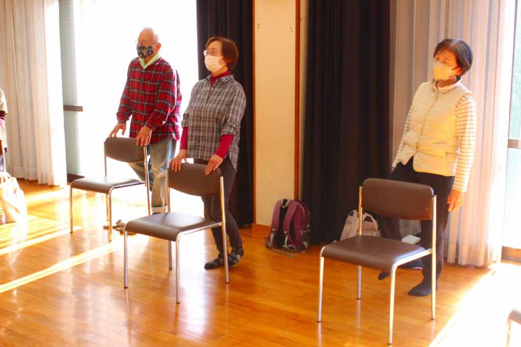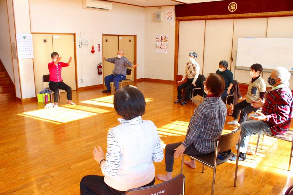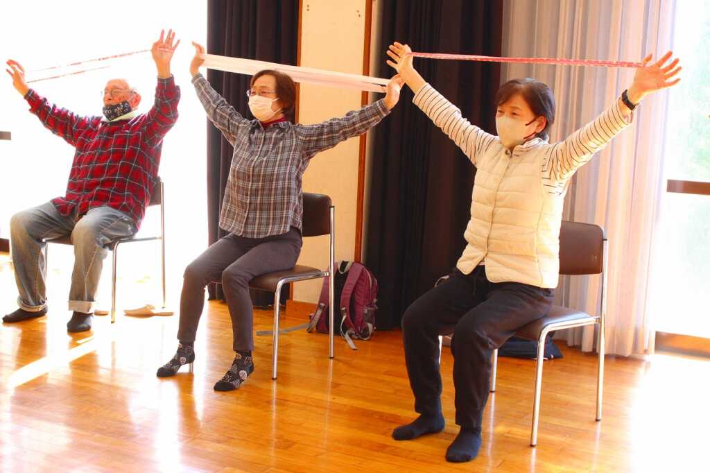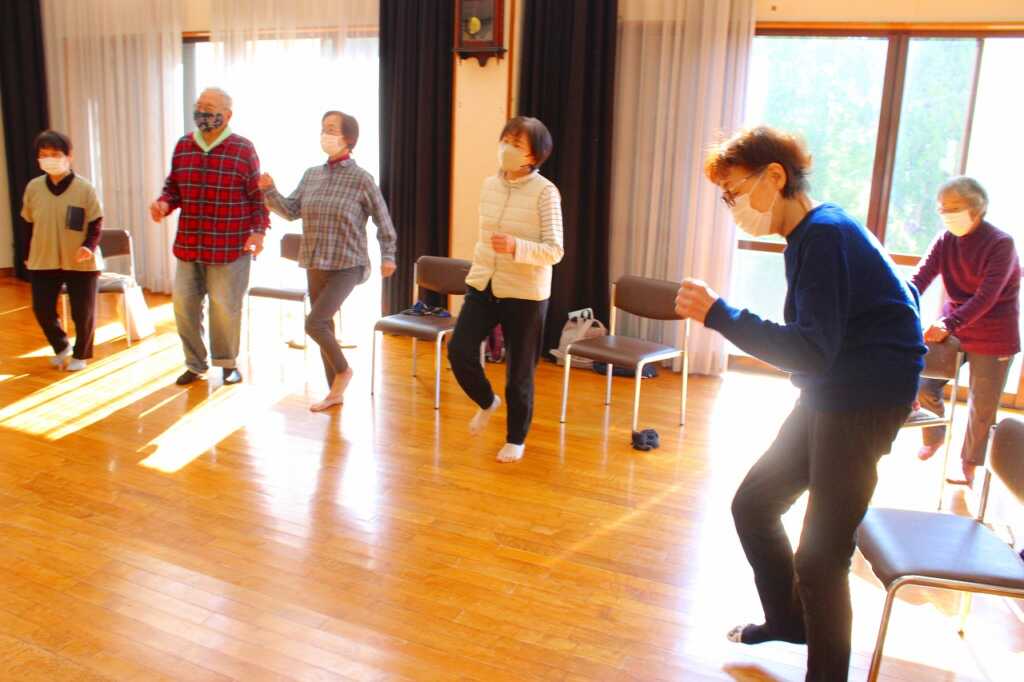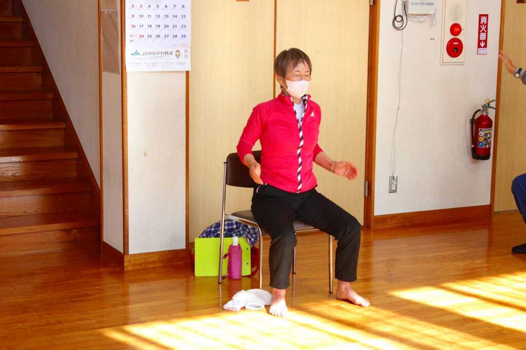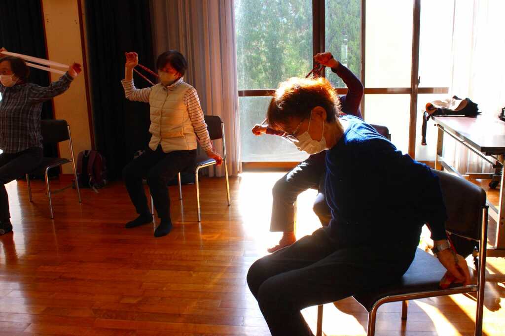 | 介護予防サポーターを中心に、お話も楽しみながら和気あいあいと体操を実施しました。気温も一気に下がりすっかり冬日和だったのもあり、入念に足の指からストレッチを行い、紐を使った体操と下肢の筋力トレーニングを行いました。 講師から「足先や耳などをほぐすと血行が良くなるので、こまめに行うと冷えの対策にもなる」とお話がありました。 次回は12月12日(金)の開催です。是非ご参加ください! |