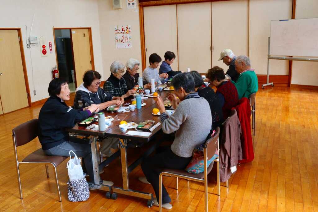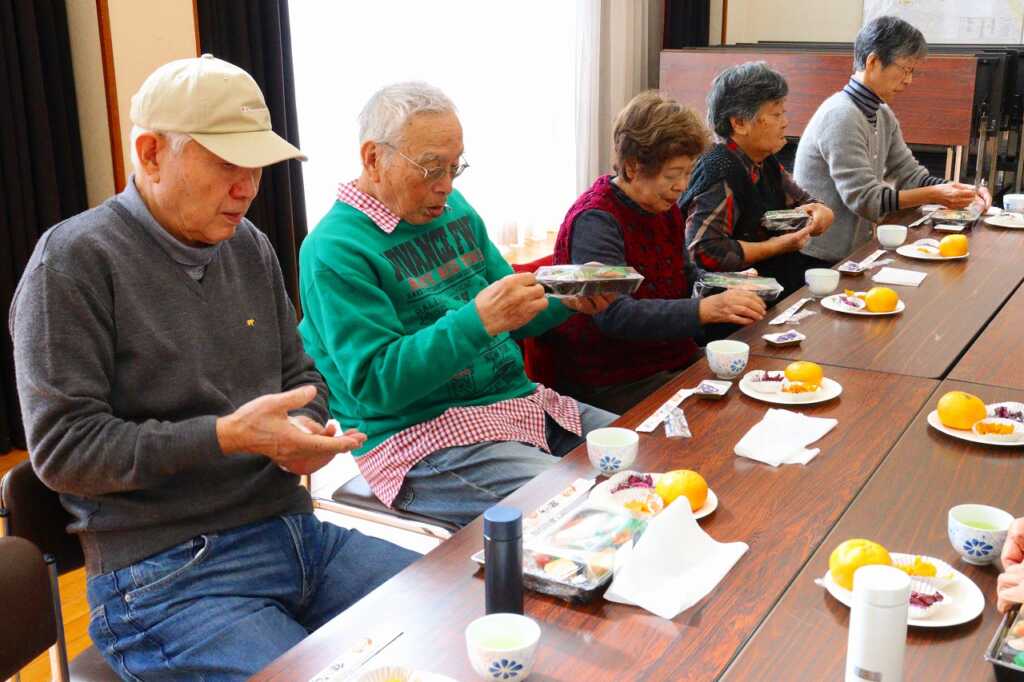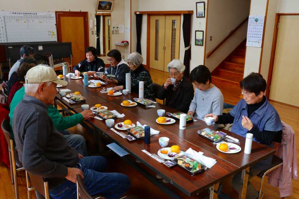 本日は、福祉会の会員が11名集まり食事会を行いました。「みんなで食事をするのはいいわね」と、楽しく談笑しながら和気あいあいとした様子で、お寿司と漬物を美味しく頂きました!デザートにみかんとコーヒーゼリーが振る舞われました。