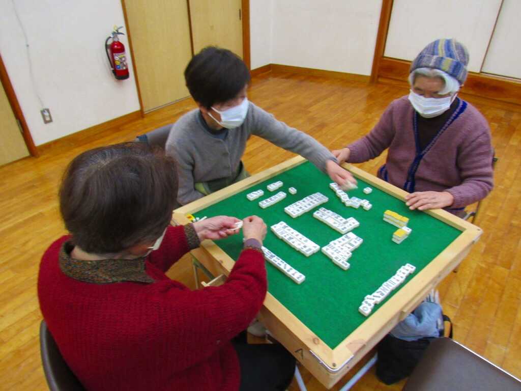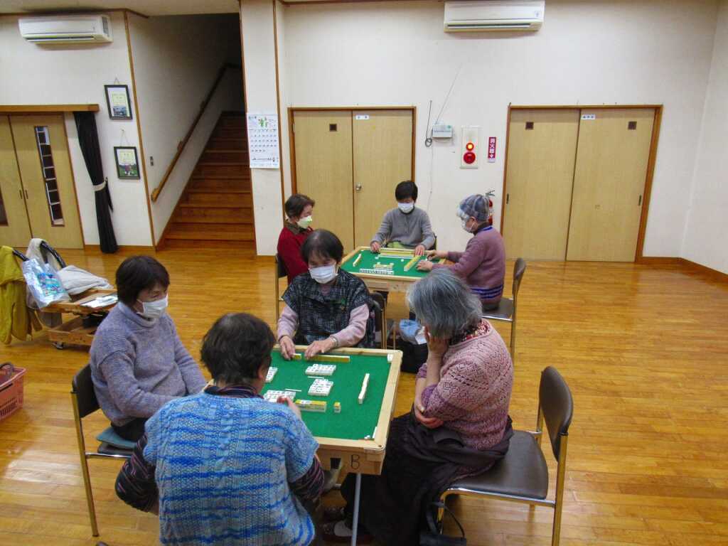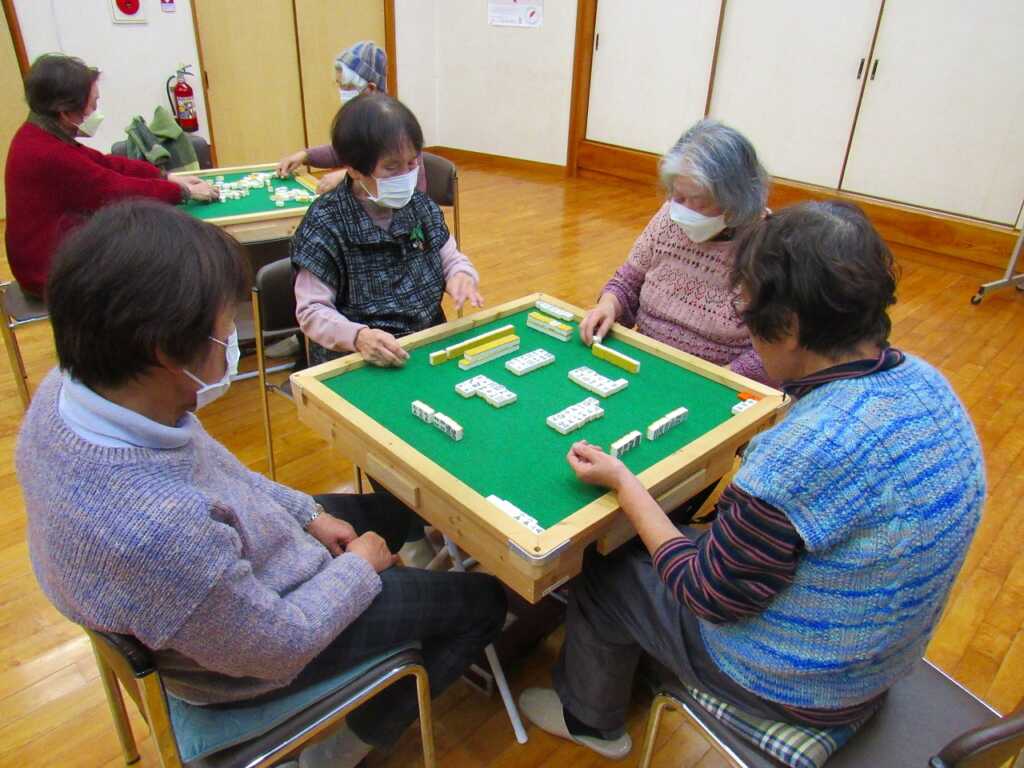 | 4人卓2つで参加者のローテーションを行い、麻雀を楽しみました。参加者からは「家でゴロゴロするより、こうして麻雀をしに公民館に来て皆と楽しくできて良いわ」と話されていました。 12月の活動は本日が最終日となります。2026年は1月12日(月)から麻雀サロンを開催します。来年もぜひご参加ください! |