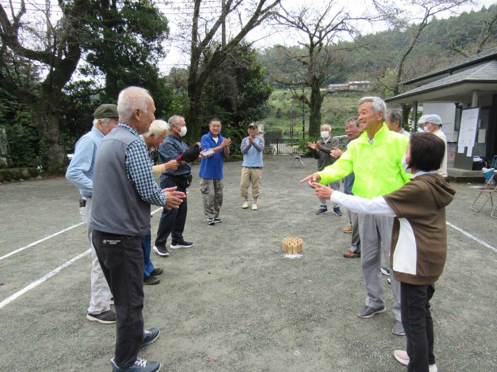 自治会・仙賑会(老人クラブ)・スポーツクラブが共催し、3年目となるモルック大会を行いました。前日からの雨と打って変わって汗ばむ陽気の中、2コートに分かれて苅野オリジナルルールを加えながらゲームを楽しみました。決勝戦は拮抗した試合展開となり「ナイスモルック!」と声をかけ仲間を鼓舞しました。見事優勝したチームには自治会長から表彰され、最下位のチームにも参加賞が贈られ拍手でお互いを称えました。その後は懇親の時間を過ごし、近くの方と食事をしてさらに盛り上がりを見せました。 |