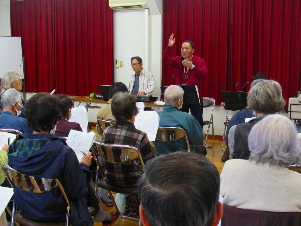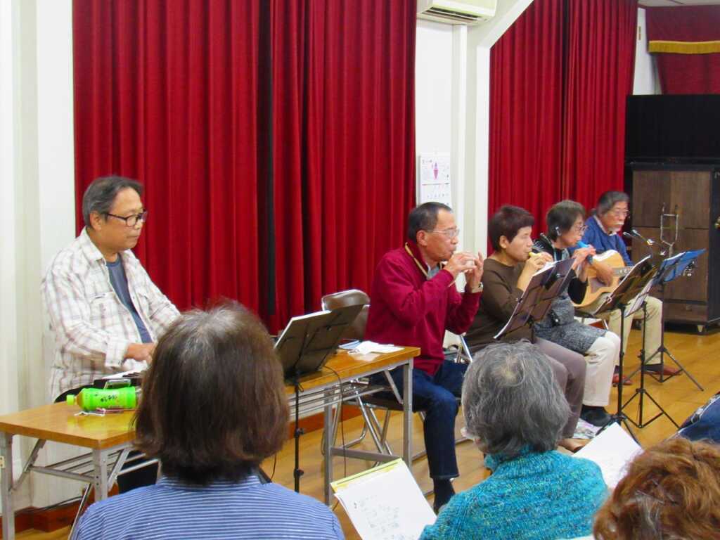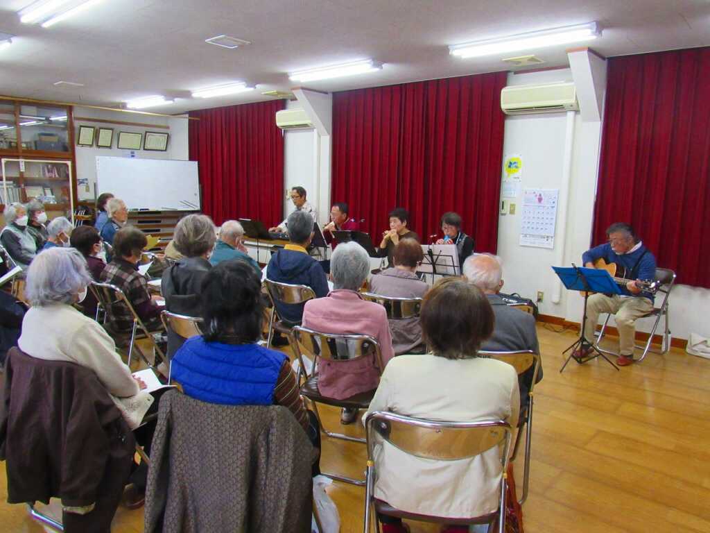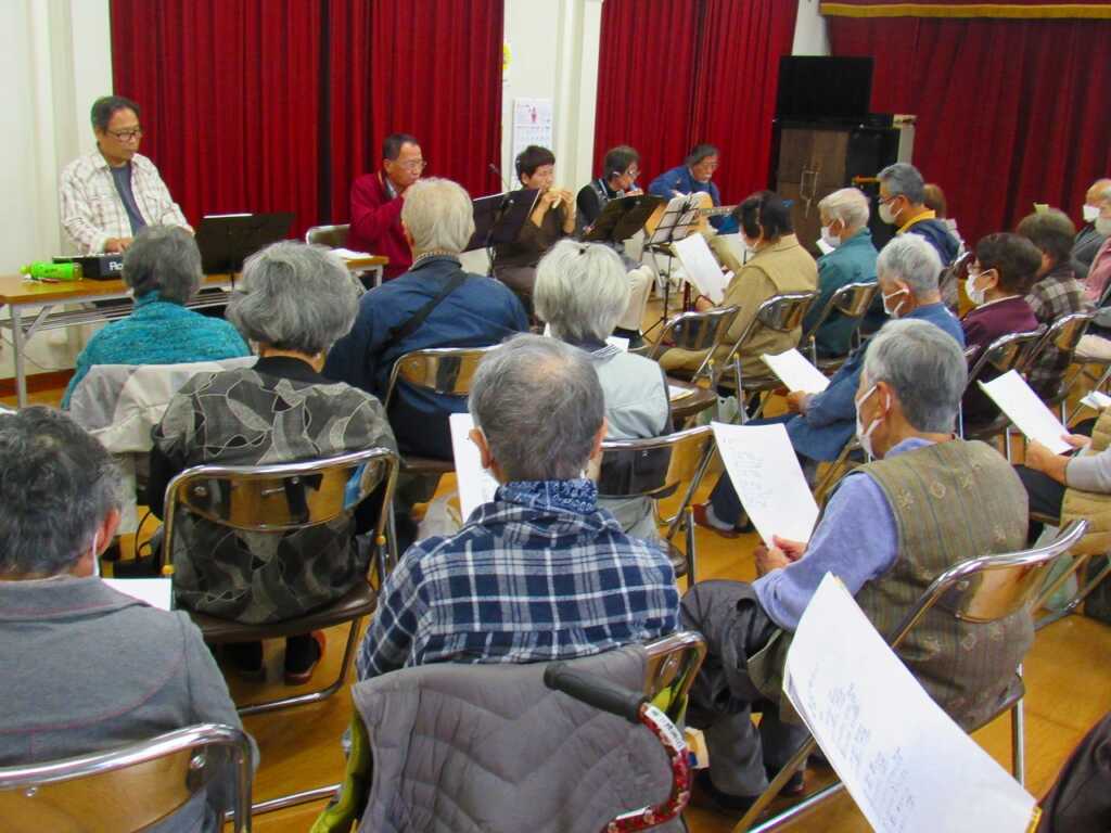 | 今年度2回目の竹の会が開催されました。オカリナグループなごみの澄んだ音色に癒され、秋の歌を合唱しました。「紅葉」では輪唱に挑戦!初めて合唱したとは思えないほど素敵なハーモニーが生まれました。オカリナ演奏の後は、○×クイズが出題され、「パンダのしっぽは白?黒?」「一円玉の原価は1円?それとも高いの?」など意外と知らない豆知識に関心が集まりました。 |