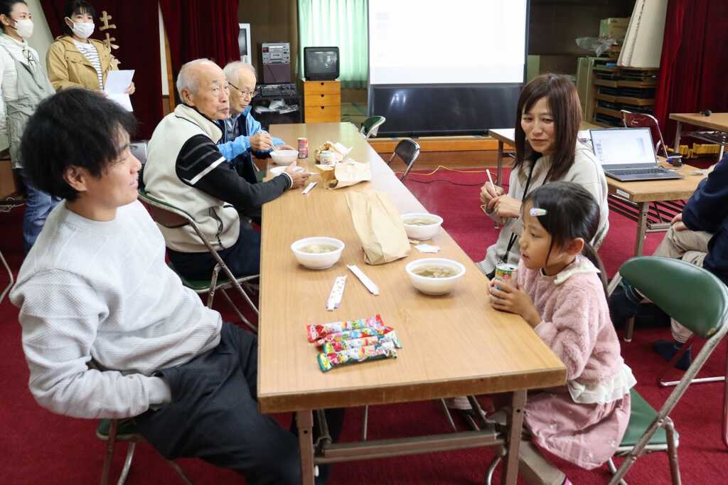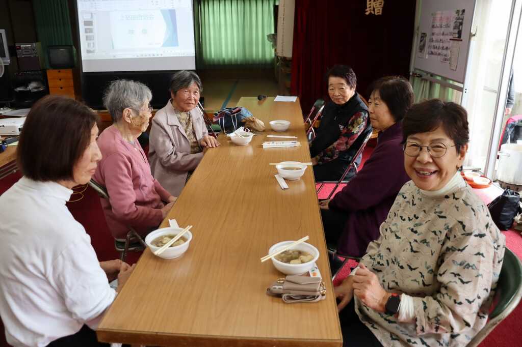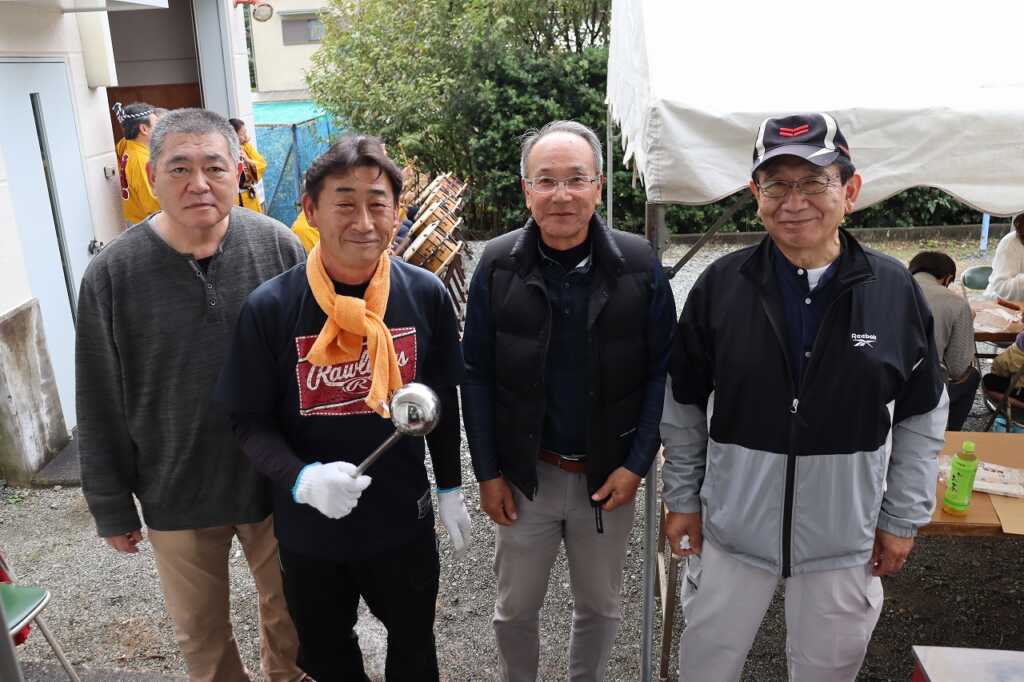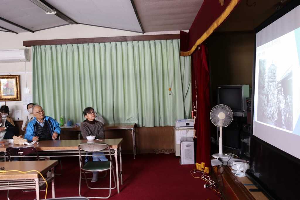 | 呼び出し太鼓の演奏に誘われ、地域の皆さんも続々と公民館に集まりました。福祉会では、地域の方がこの日の為に丹精込めて作ってきた野菜を使い、焼き芋と芋煮を調理して参加者に振舞いました。 公民館の中では、髙𣘺自治会長が上怒田地域や南足柄市の歴史について紹介しました。三輪の車や一昔前の大雄山駅周辺の写真が映し出されると、参加者は目を細めて「懐かしいねぇ」と仰っていました。最後にはお楽しみの抽選会が行われ、楽しい一日を締めくくりました。 |