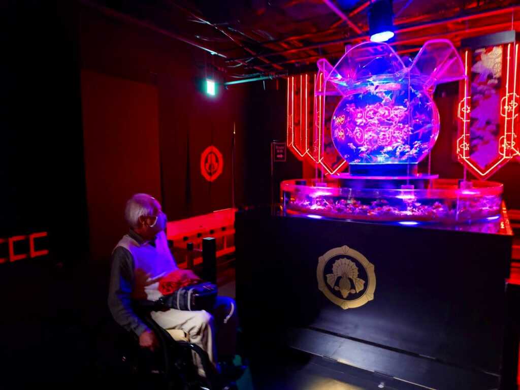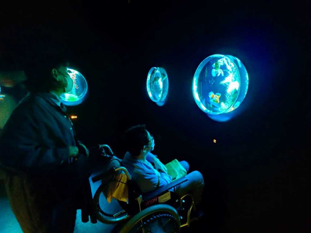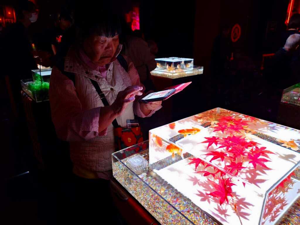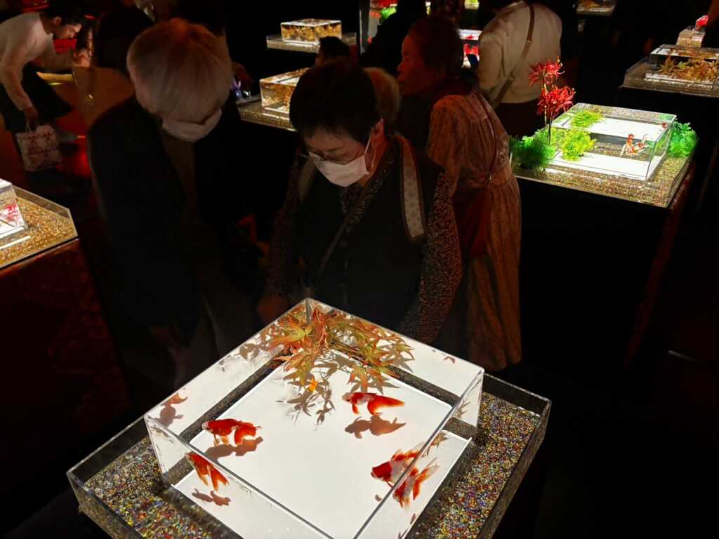 | 「今年は都心部に行こう!」という役員の提案から、銀座三越にあるアートアクアリウムGINZAに行きました。昼食は、イタリアンでスープから始まるパスタランチをお腹いっぱいいただきました。アートアクアリウムGINZAでは、音と光の幻想的な雰囲気に圧倒されながら優雅に泳ぐ金魚に癒されました。銀座三越内でのショッピングも楽しみました。 |