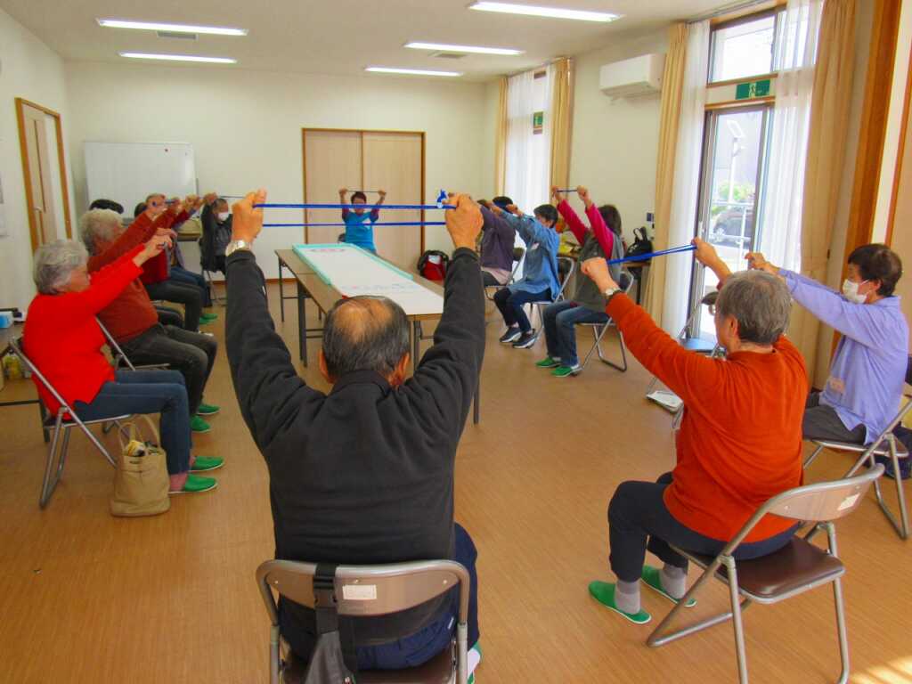 はじめに、準備体操で身体をほぐしました。体操の最後の脳トレを交えた体操では、混乱しながらも笑って楽しく身体を動かしました。
