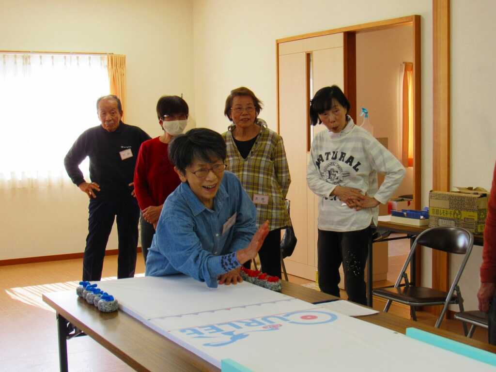 カーレットでは、3人1組に分かれて、3ゲーム対戦しました。試合中に、対戦相手からも称賛の声が挙がるほどの高得点も!お互いにアドバイスをし合いながら、和気あいあいと楽しみました。