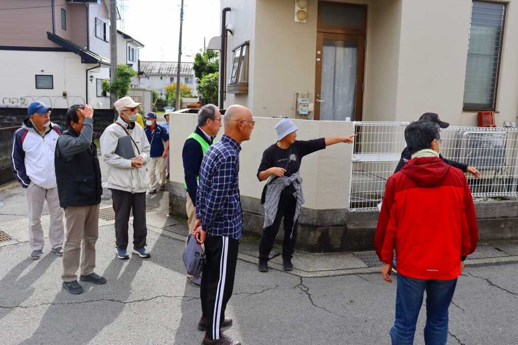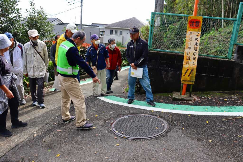 7月26日に行われた協議体の中で話題に上がった通学路について、実際に歩き状況の確認が行われました。「車からだと死角になる」「車が良く通るからグリーンベルトやスクールゾーンを路面に表示して欲しい」等、交差点や車通りが多い場所、急勾配な道でどのような状況で危ないかを話しながら進みました。