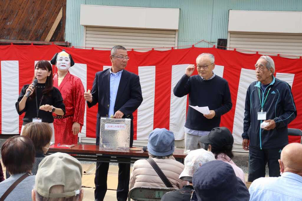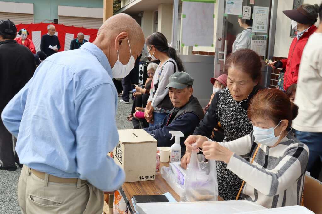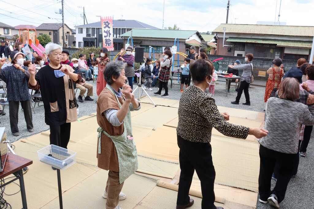 | 1日目は児童館の中で自治会の皆さんによる展示が、2日目は展示に加え児童館の広場にて地域内の団体による出店が並びました。カラオケのトリである文化部長によるマツケンサンバで会場の熱気が一気に高まった後は、福祉会と元気体操の皆さんがズンドコ節を披露し、周りの方も手拍子で応援!また、福祉会の皆さんは、恒例となった磯部もちも販売し、知り合いがいると積極的に声をかけ、楽しみながら交流していました。終盤の抽選会の時間になると、台河原地域内のお店の商品券などを狙って多くの家族連れや近所の方で大賑わい!会場中から笑い声が響き渡った文化祭となりました。 ~11月1日・2日 台河原児童館にて |