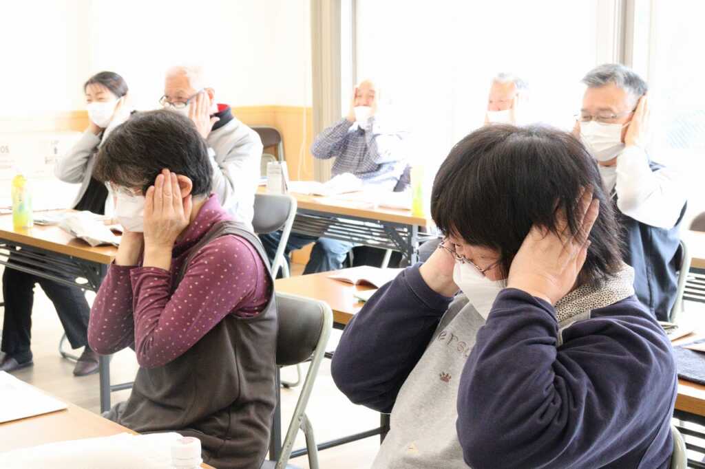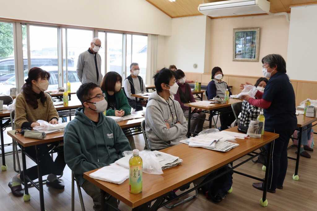 千津島自治会が生涯学習講座で防災を考える講座を開催 2025年11月5日 最終更新日時 : 2025年11月5日 msyakyo 日本赤十字社神奈川県支部指導員の東江文香氏をお招きし、避難生活支援講習を行いました。講義の途中、突然地震が起こったことを想定した“シェイクアウト訓練”の一幕があると、机の下の脚を持って机が動かないようにする参加者や、揺れが収まった後の行動として出入口だけでなく外に逃げられるように窓の方向に向かう参加者がいたことから「落ち着いていて素晴らしい対応だった」と東江氏も大絶賛。その後は、新聞紙スリッパ・コップ、ホットタオル作りをはじめ、口腔ケアとして唾液腺のマッサージや、手足だけでなく口でできるじゃんけんなど、特別な物が無くても誰でも簡単に避難所で使えるコツを学びました。東江氏は「無いから出来ないではない。まず工夫をすることが大切」と繰り返し訴え、参加者も大きく頷いていました。 ~11月2日 千津島公民館にて