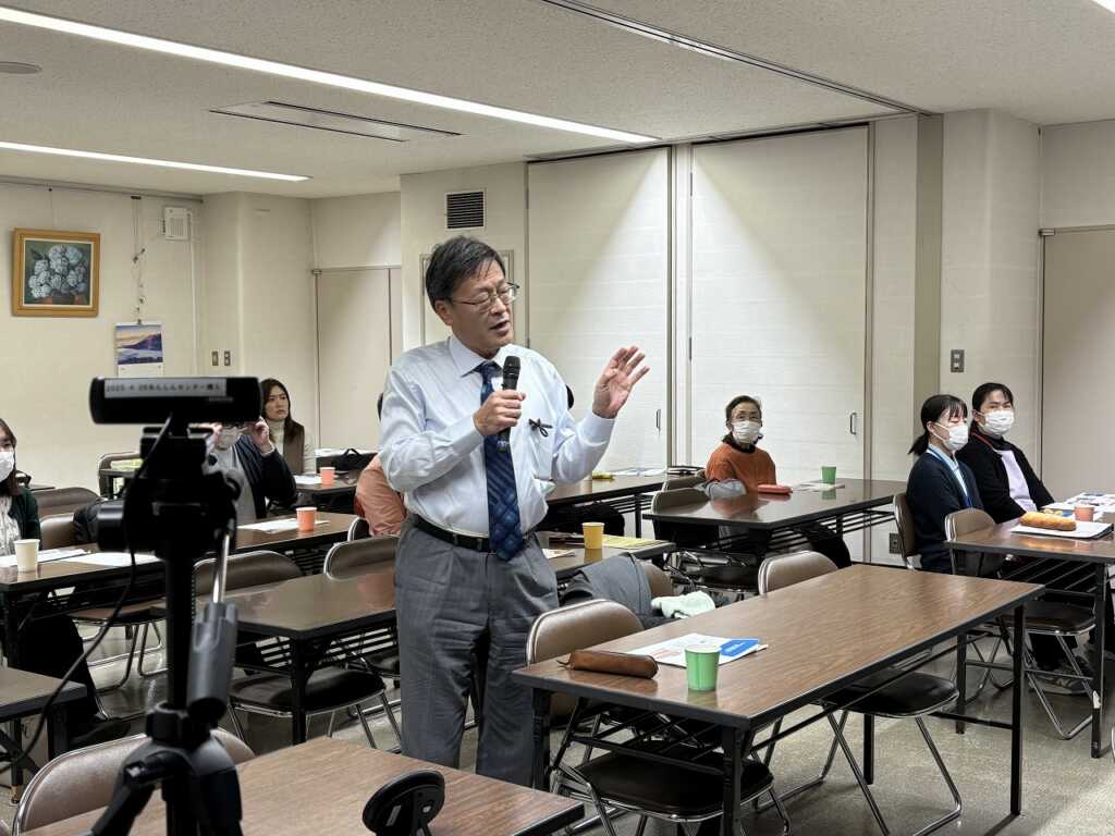 今回は(社福)一燈会さんの協力を得て、会場では、一燈会管理部人材開発課ヴォ・ティ・キム・トアさん(ベトナム)、協同組合FITサポートネットワーク 名取 瞳 さん、フィリピンからZOOMでStudioKay International Japanデスク担当 福井 淳一さんにご講義をいただきました。外国人スタッフの方が、どのような流れで日本で働くことになったのか、働いている施設ではどんなサポートをしているのかについて、なかなか知ることができない貴重なお話をしていただきました。現場では、安心してコミュニケーションが取れる体制づくりや、それぞれの国の人同士で”お互いの強みを生かす”ことが大事、などのお話に、参加者からは「目からウロコでした」「いつか一緒に働きたい」などの感想が聞かれました。次回の開催は来年度7月ごろの予定です。(問い合わせ:あんしんセンター 0465-72-2109)。―令和7年11月4日(火)りんどう会館にて