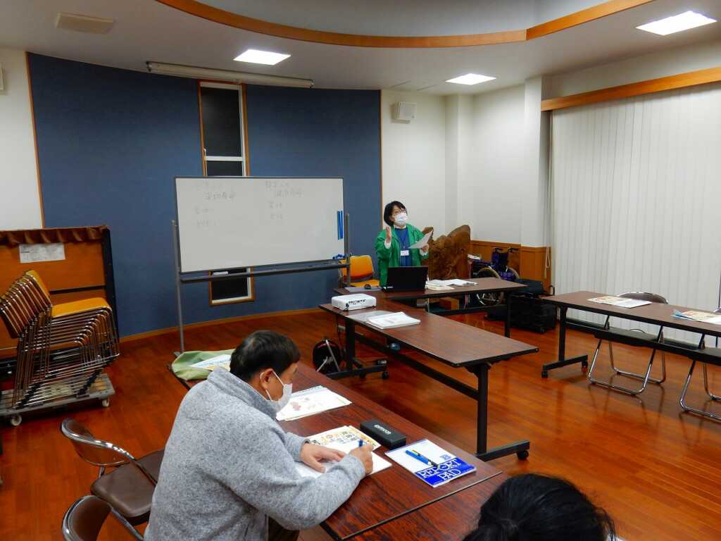 | 社協で配布しているエンディングノート「わたしのしおり」を活用した書き方講座を行いました。実際に「わたしのしおり」を開きながら、書き方のポイントが伝えられました。時折、講師から事例が紹介されると、参加者は自分ごととして深く頷きながら聞く様子もありました。 |