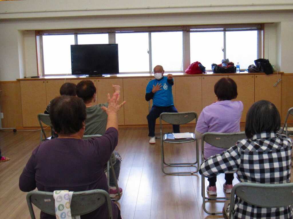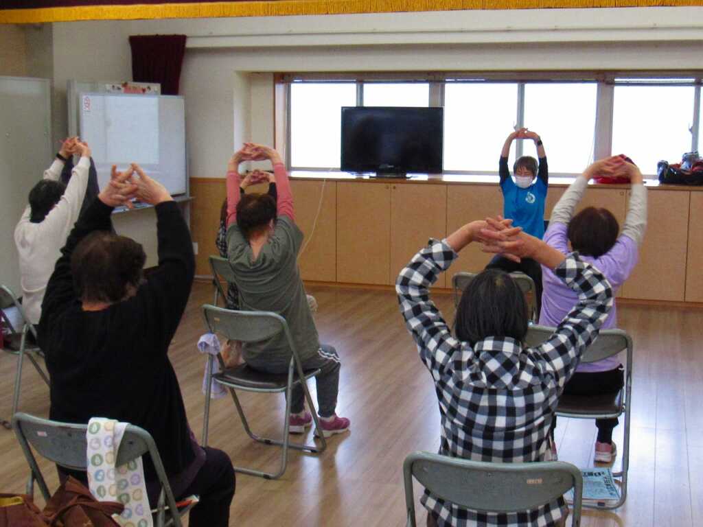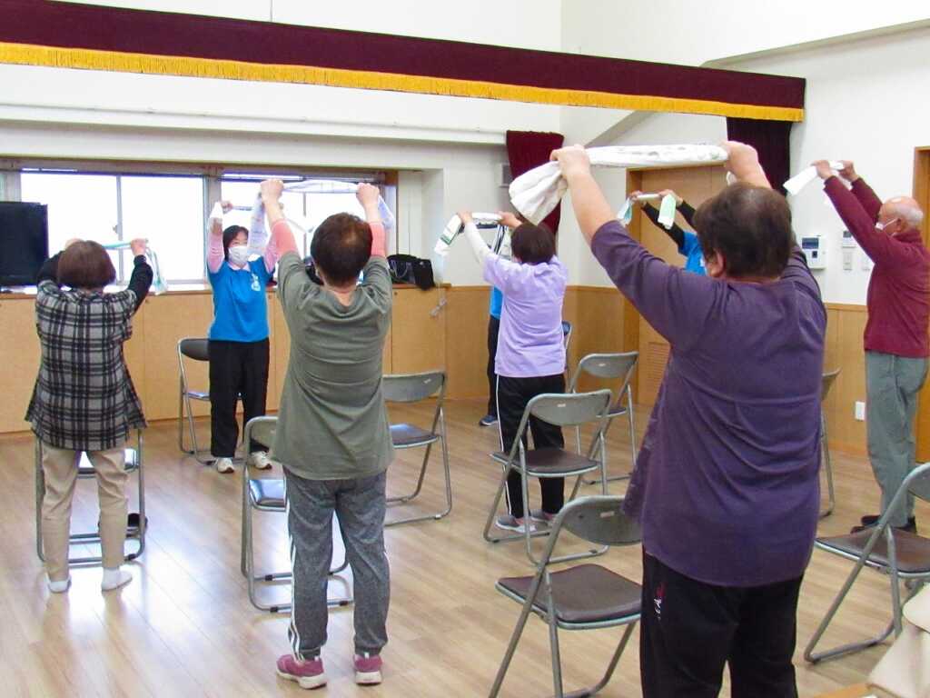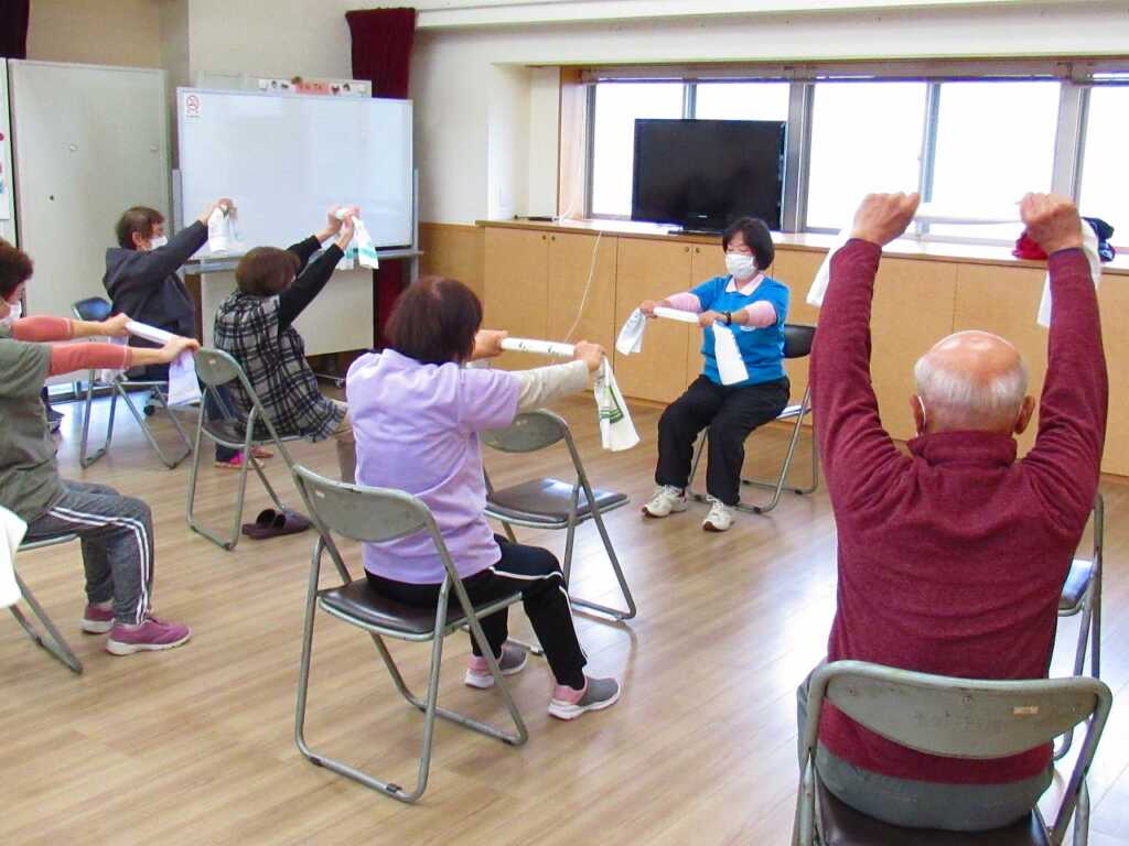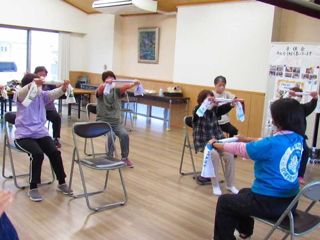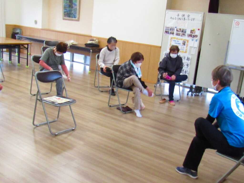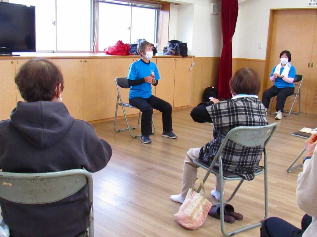 介護予防サポーターによる体験会の2回目を行いました。準備体操・下肢筋トレ・タオル体操を体験。準備体操では、冷えた指先を温めることから始め、段々と身体全体も温めました。介護予防サポーターから丁寧な説明があり、参加者は「体操は自分のためだから頑張りたい」と話し、全てのプログラムをやり切りました。