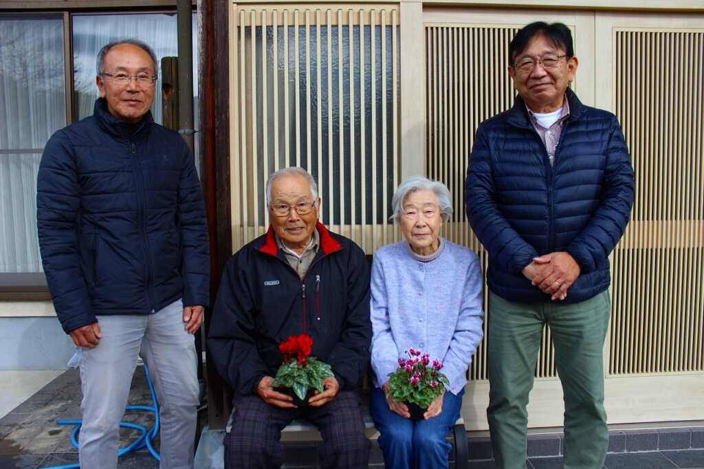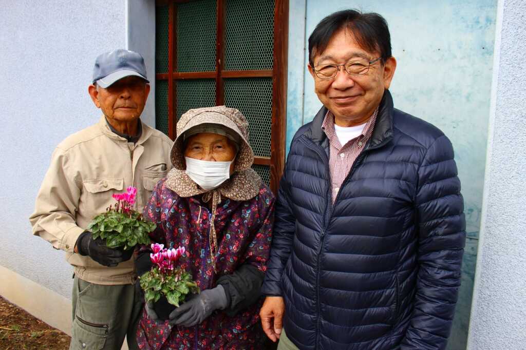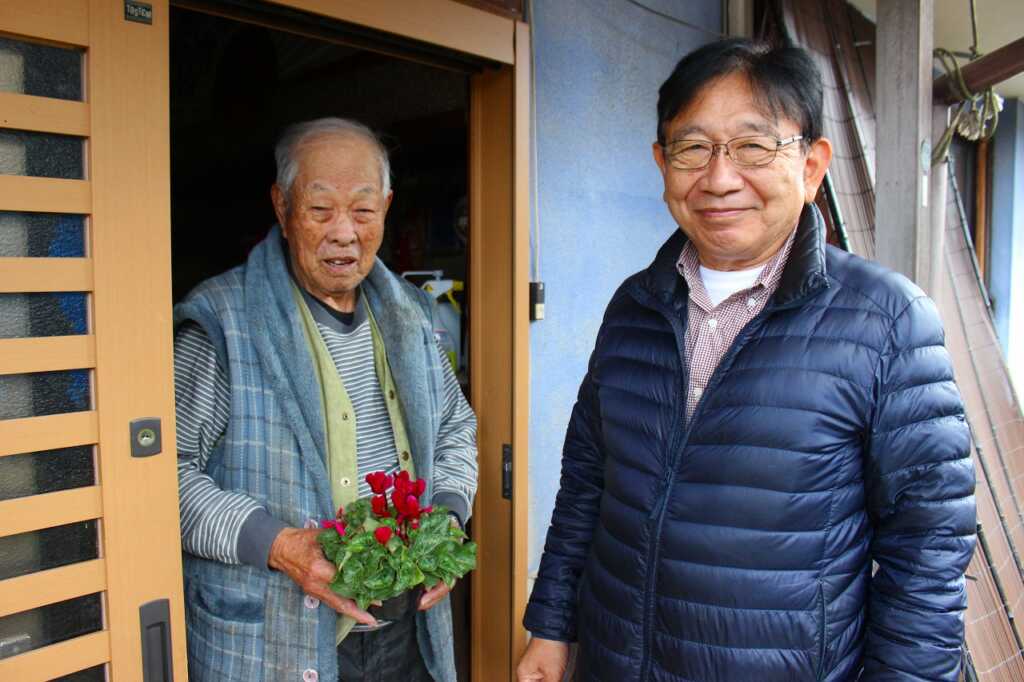 | 毎年恒例のシクラメンの花を満80歳以上の方にお渡ししました。福祉会の会長と副会長で全ての対象者宅を訪問し「お元気ですか?」「最近どうしていますか?」など声をかけました。会長と副会長は地元出身とのことで、対象の方と会話が弾む様子があり、皆さんの元気な様子を伺うことができました。 |