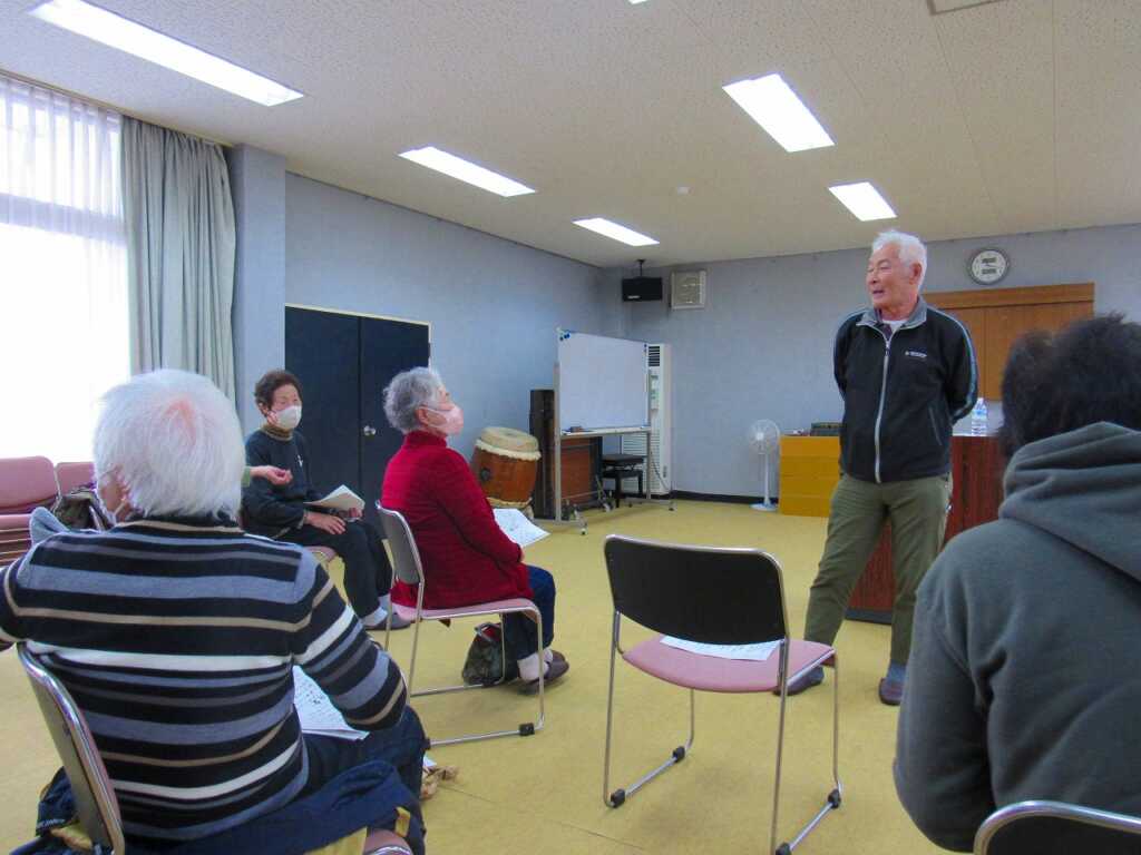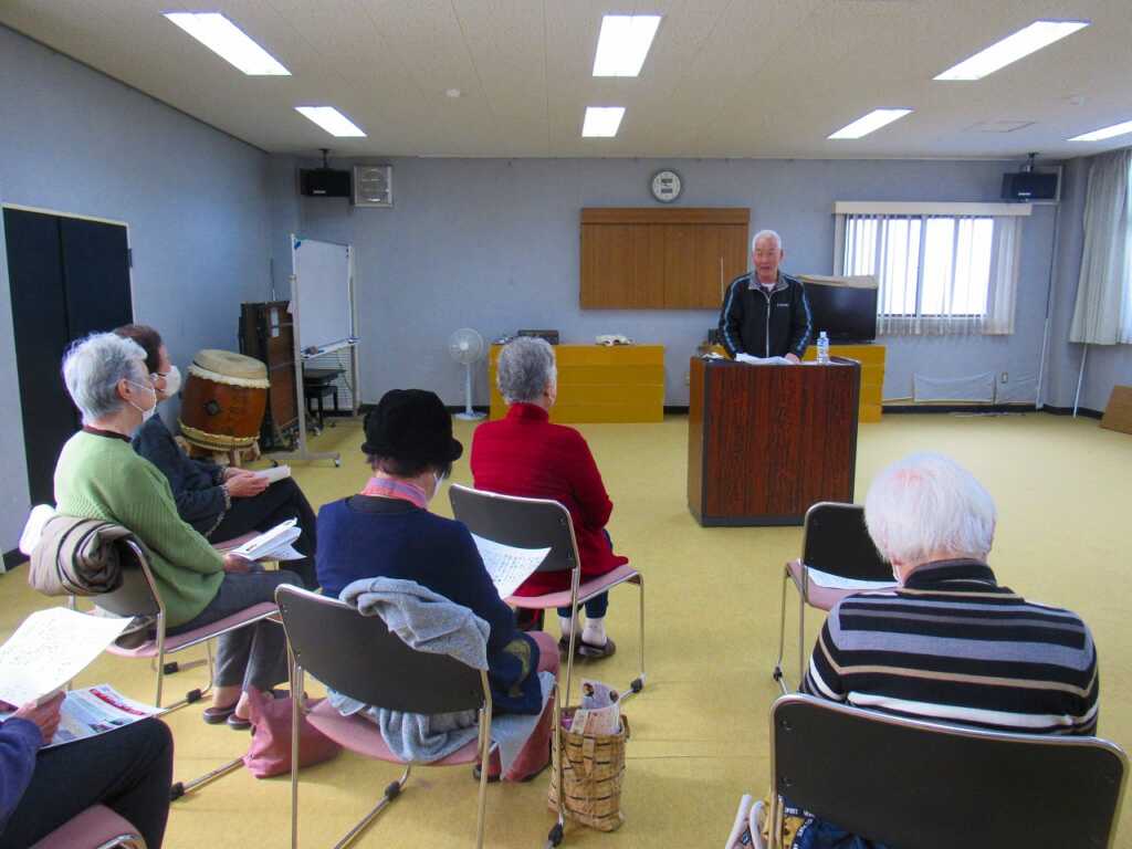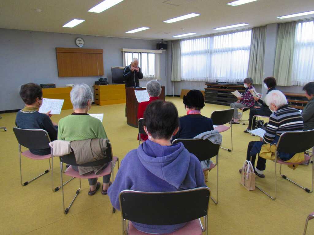 今回は、クリスマス前ということでクリスマスソングから始まりました。お正月の曲や歌謡曲も歌い、休憩ではお喋りを楽しみました。今回で、歌謡サロンを初めて1年になるとのことで、参加者から「集まる場をつくってくれたことに感謝!ありがとう」と、主催の角さんにお礼の拍手が送られました。  壗下歌謡サロンは毎月第4月曜日の10:30~行っています。次回は、1月26日(月)です。皆さんぜひお越しください!