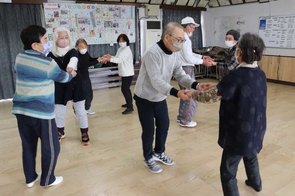 | 今年最後の体操会を開催しました。全身くまなくストレッチした後、今回はスクワットに挑戦しました。介護予防サポーターから正しいスクワットのフォームについて説明を受け、自分のペースで挑戦しました。次回の開催まで間が空くため、介護予防サポーターより「毎日10回でもやると違うので、できる人はトイレのついでにやってみましょう」と声掛けがありました。踊りの時間では、定番の「きよしのズンドコ節」のほか、クリスマスにちなんで「ジングル・ベル」をペアになって踊り、クリスマス気分を味わいました。 体操の後はお待ちかねの忘年会です!お弁当をいただきながら、話に花を咲かせて楽しみました。 次回は、年明け1月22日(月)の開催です。栄養講座を開催するため、体操はお休みとなります。参加される方は、塩分濃度を測定するためご自宅で作ったお味噌汁をご持参ください。 |