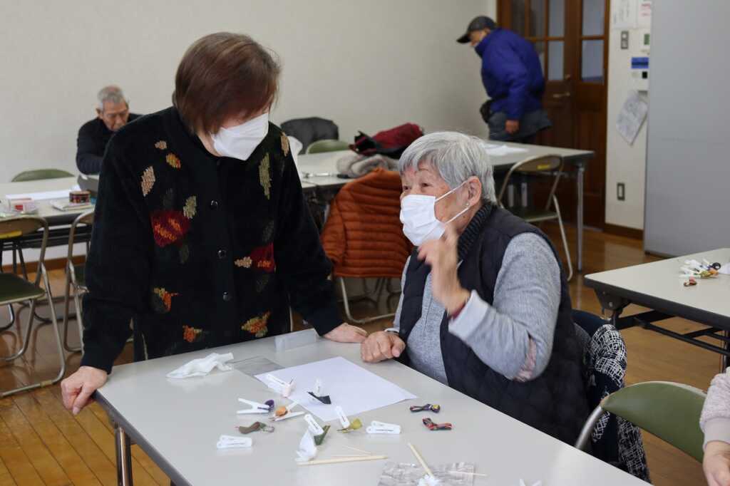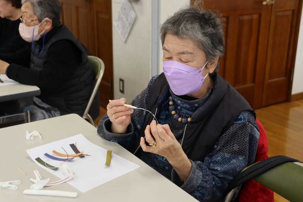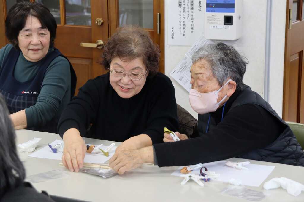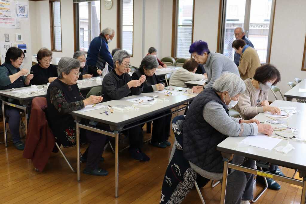 | 口コミで参加者が増えている福祉の日。今月はクラフトバンドを使ってようじ入れを製作しました。一つずつ丁寧に形を作りボンドで固定しました。製作のほかにも、体操や脳トレ、ミニゲームも実施され、役員さん含め全員で楽しみました。お昼には市内鮮魚店の手作り弁当が提供され、参加者からは「ボリューム満点で、味もとても美味しい!」と好評でした。 次回は3月8日(土)の開催です。外出しやすい季節にもなりますので、ご近所の皆さんお誘いあわせの上、ぜひご参加ください。 |