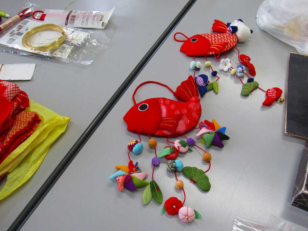 | 雛飾りにも使われるつるし鯛を作成しました。鯛や小物飾りの型紙に合わせ、ちりめんや鮮やかな柄の布を選びました。「色の組み合わせを選ぶのが難しいわ」と苦戦しながらも黙々と作成しました。「残った個所は家で作成しよう。完成いつになるかしら」と参加者の皆さん談笑しながら解散となりました。 次回は3月4日(水)の開催です。 ~2月25日台河原児童館にて |