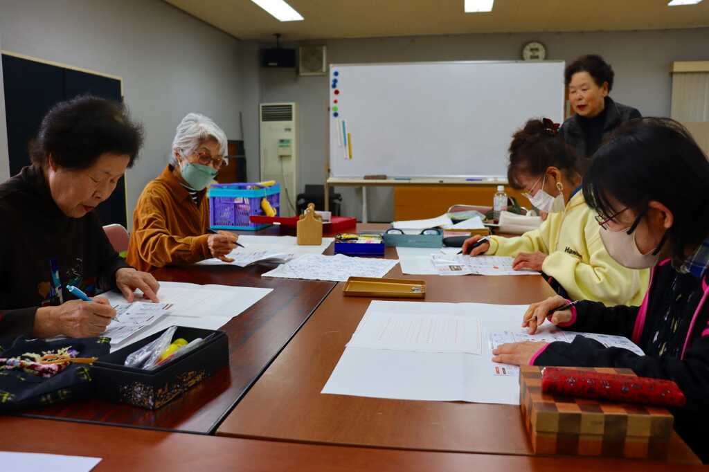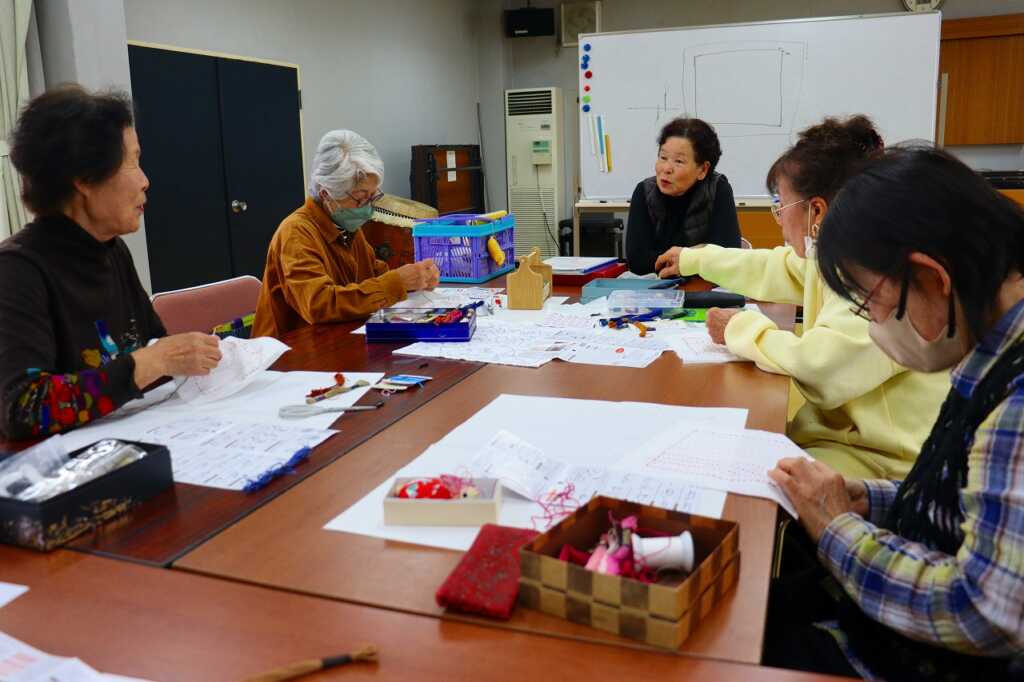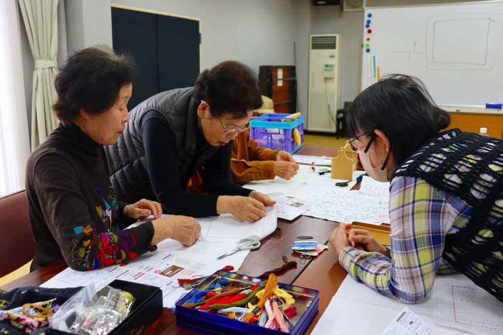 | 今回は、刺し子でミニ布巾作りをしました。自分の好きな色の刺繡糸を選んで、基本のランニングステッチから挑戦!お喋りを忘れるくらい集中して作業に没頭しましたが、段々と余裕が出てきて世間話もできるようになりました。細かい作業が多く、終わらなかったため、来月は今回の続きを行うことになりました。 次回は、4月16日(木)を予定しています。材料費は200円です。他地域からの参加も大歓迎ですので、皆さんぜひお越しください! |