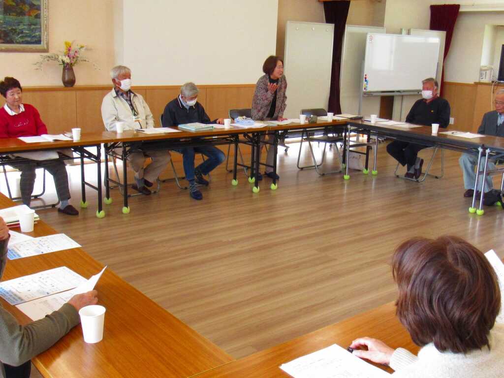 | 千津島でおたがいさまネットが発足して2年が経ちました。今回は、永田米昭会長から移動支援についての報告と千津島コーディネーターリーダーの瀬戸清子氏から年間報告がありました。各サポーターからは、ご自身の活動の紹介と活動中の疑問などをお話しいただき、参加者で共有しました。瀬戸清子氏から「コーディネーター業務は大変だが、サポーターと仲良くなれることが嬉しい。活動を終えたサポーターが報告をしてくれる時の表情が良く、活動に達成感を持ってくれたことが伝わってくる。まだ活動できていない人にも一歩踏み出してもらいたい」と伝えられました。参加者からは「サポーター全員が活動をできるように周知活動をしてはどうか」と、活動に前向きな意見が多く聞かれました。 |