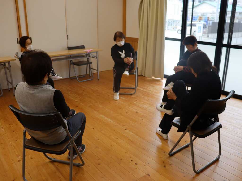 | 今年度1回目の体操会が開催されました。座位でできるストレッチを中心に実施しました。参加者の皆さんで回数をカウントしながら、手足の先から入念に伸ばしました。曇り空で肌寒い陽気でしたが、全身のストレッチが終わる頃には身体がぽかぽかと温まり、参加者からは「さっきまで寒くて暖房つけようと話していたのが嘘みたいに身体が熱くなってきたね」という声が聞かれました。今年度も健康維持のために身体づくりに励んでいきましょう! 健康体操の会は毎月第1・第3土曜日9:30~開催しています。おしゃべりも楽しみながら、和気あいあいと活動しています。次回は4月18日(土)の開催です。 ~4月4日生駒公民館にて |