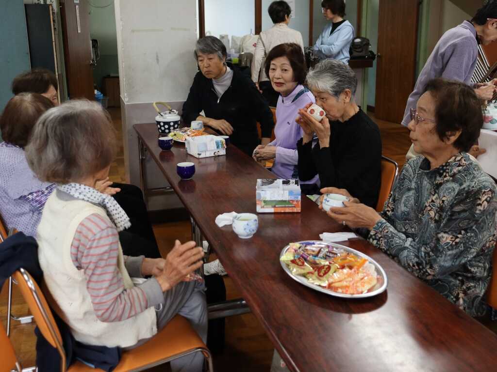 新年度がスタートし、心機一転体操にも力が入ります!手足の先から入念にストレッチをした後、スクワットに挑戦しました。20回が終わるタイミングで「ラスト10回頑張ろう!」と声がかかると、参加者からは思わず「え~!!」という声が聞かれましたが、最後の力を振り絞ってプラス10回頑張りました!最後の1回が終わると、「30回連続できたね!すごいね!」と拍手でお互いを称え合いました。  体操後は月1回のお楽しみのお茶会が開催され、テーブルごとに話に花を咲かせ楽しいひと時となりました。 次回の体操は4月17日(金)の開催です。是非ご参加ください。