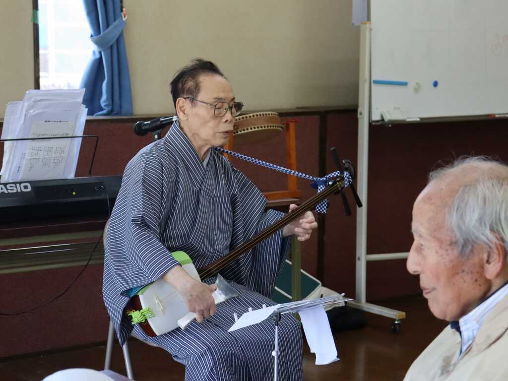 毎年恒例のお花見会が盛大に開催されました。今回は三味線・民謡・昭和歌謡の渡部久人さんをお招きし、三味線の繊細な音色と素敵な歌声をご披露いただきました。参加者の出身地に合わせた民謡や、江戸末期から明治時代に流行したと言われるお座敷芸の「活惚れ」まで、幅広く演奏いただきました。参加者の中から代表でお2人が演奏に参加し、会場からは太鼓に合わせて応援の手拍子が沸き起こりました。