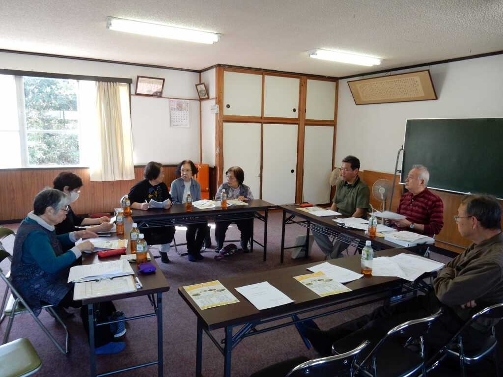 終始、和やかな雰囲気の中事業計画を検討しました。その中で、花壇活動に関わっていた2名の女性会員から「花壇活動をもっとたくさんの女性会員に手伝ってもらい、そのあとお茶飲みをしたい」と意見が出され、今後は花植えの時に協力者を募って花壇活動を行うことになりました。また、会員それぞれレクリエーションや出前講座で知りたい、聞きたい内容を挙げ、候補の中から活動を決めていくこととなりました。