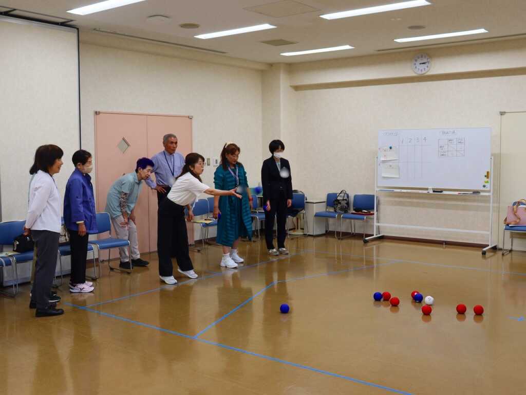 総会終了後、ボッチャを通して会員さんで親睦を深めました。1試合4ゲームのトーナメントを行い、ルール説明後試合を開始しました。白いジャックボールに各チームボールの力加減に苦戦しながらも、勝負の行方に一喜一憂しながら盛り上がりを見せました。「絶対No.1」チームの皆さん、優勝おめでとうございます!