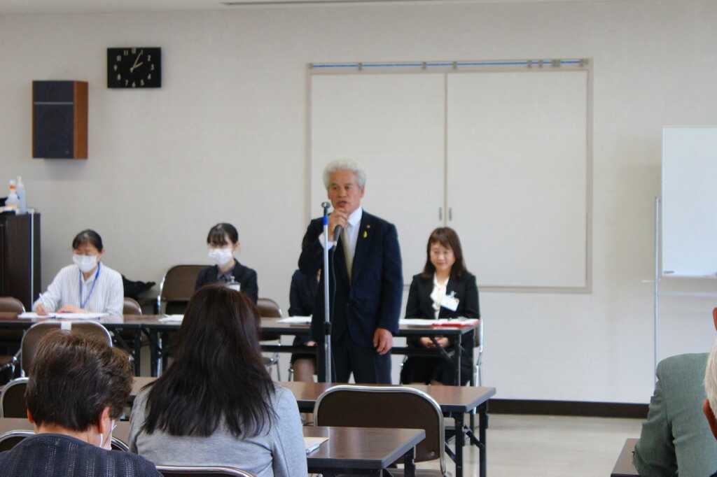 | 保護司連絡会の山内代表と更生保護女性会の田村会長からの挨拶の後、来賓の方々からご挨拶をいただきました。今年度は、両会の新会員が1名ずつ加わったとのことで、それぞれの方から挨拶があり、他会員から温かい拍手で迎えられました。合同での総会後は、それぞれの会に分かれて総会を行いました。 |