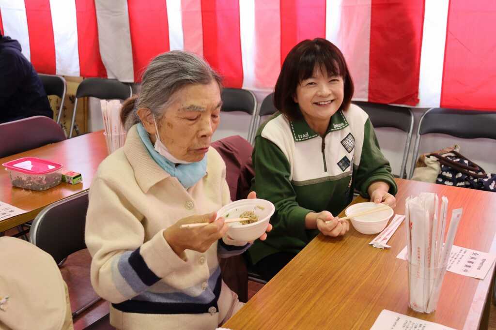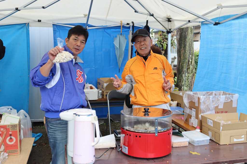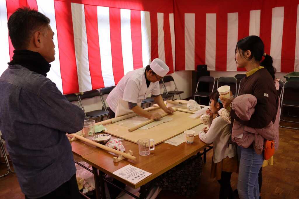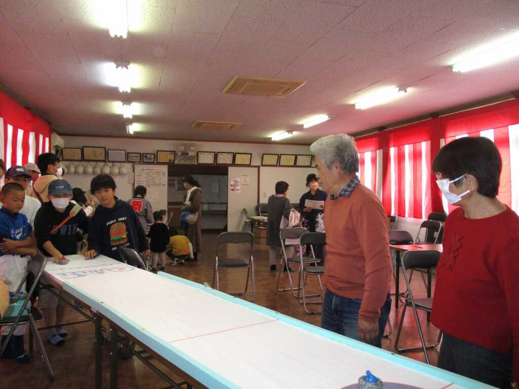 | 福祉会では女性会員が中心となってバザー販売を実施しました。割烹着を探し求めるお客さんが来ると、サッと商品を差し出して「割烹着あるよ!どっちの柄が良い?」とお声掛けしていました。 公民館の中では、作品展示のほか、そば打ちの会による実演が行われ、地域の方に打ちたてのそばが振舞われました。下怒田地域福祉会の協力のもと、カーレット体験も行われ、お子さんを中心に盛り上がりました。 |