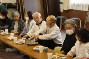 遊楽亭楽遊さんによる「親子酒」という落語が披露され、多くの笑い声が挙がりました。お酒のある会食が多くなった世情を汲んで選んだ演目で、落語の後のお茶会も笑顔が触れる場となりました。久しぶりに顔を合わせた方も多く「こういう集まりがまたできて良かった」と言いながら帰路につきました。